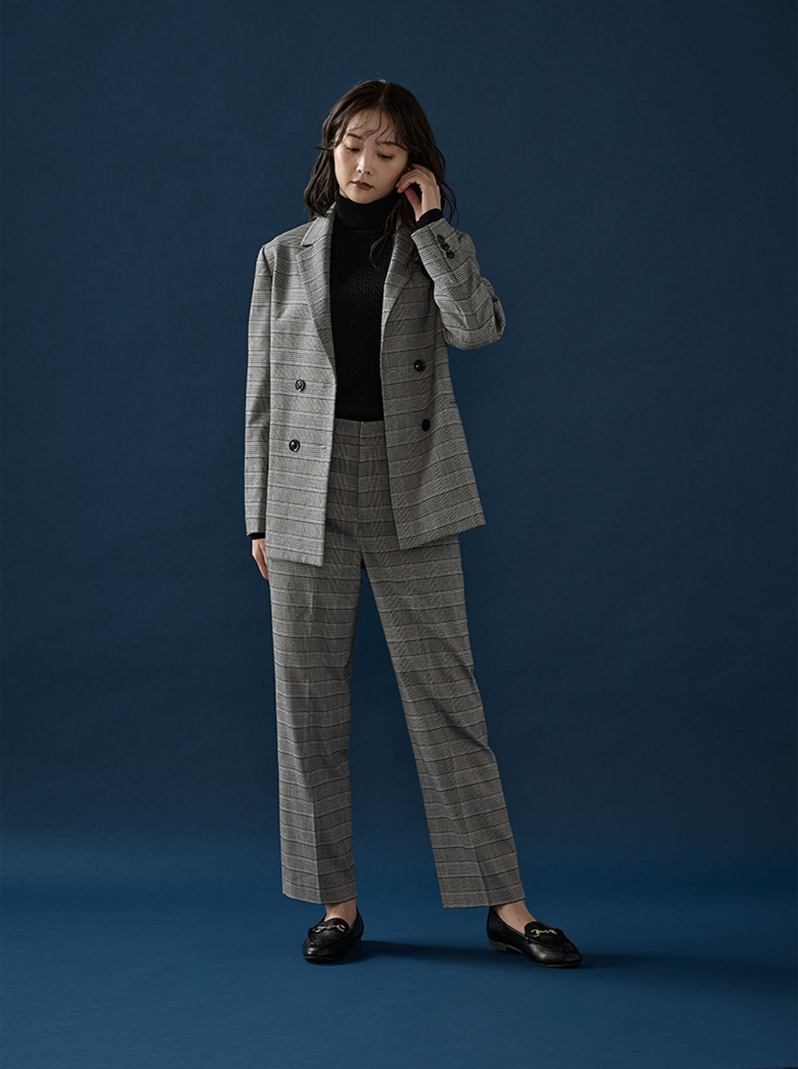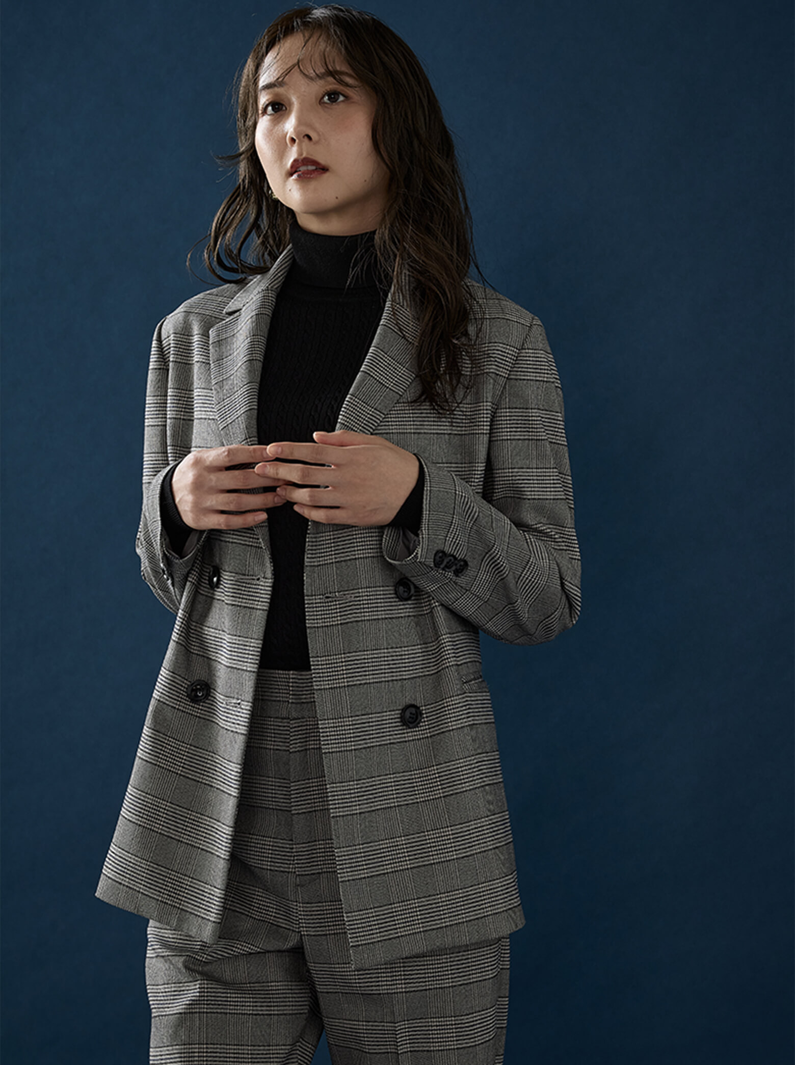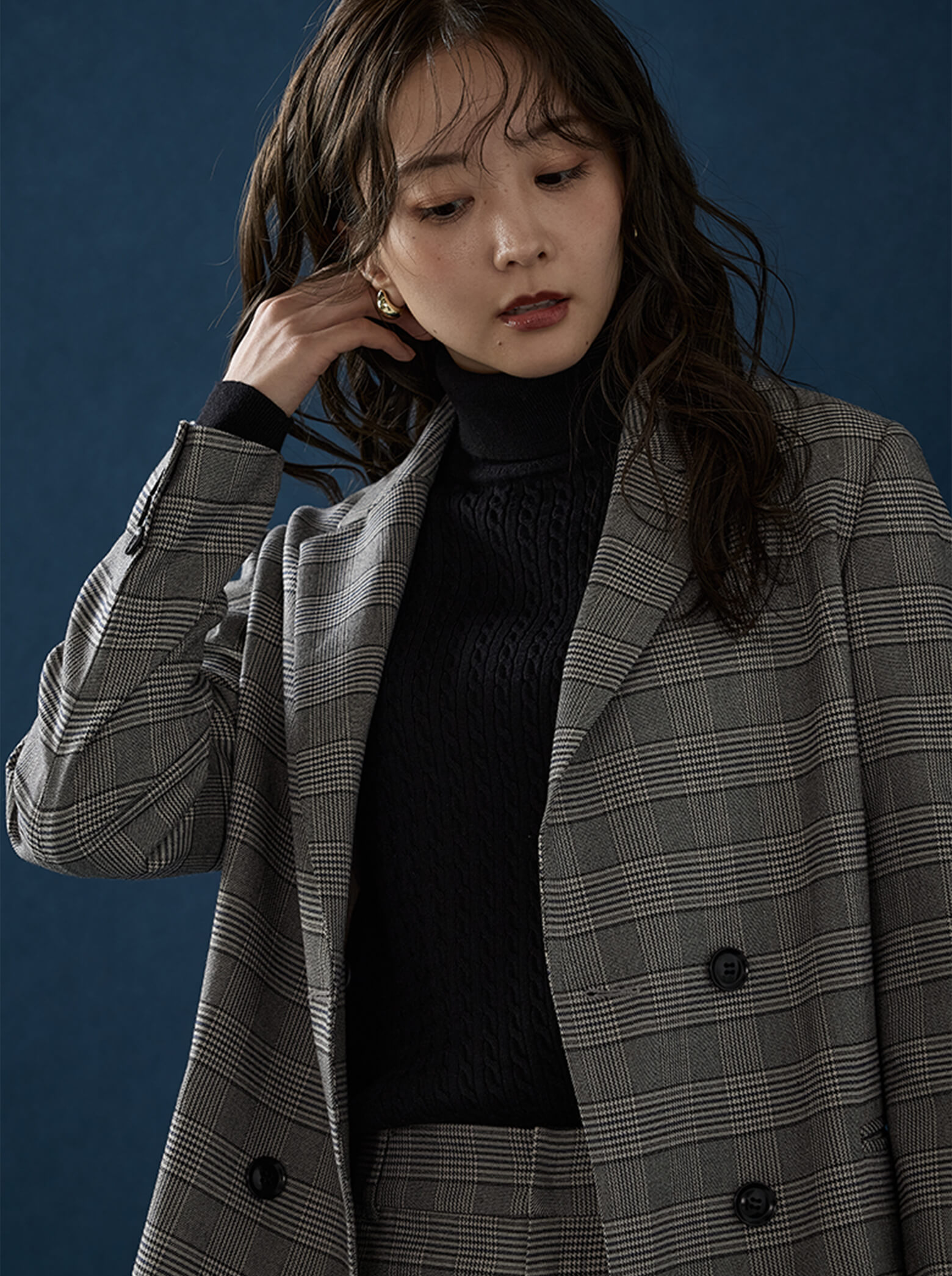 グレンチェック柄にはネイビーのラインで差し色を仕込んでいます。