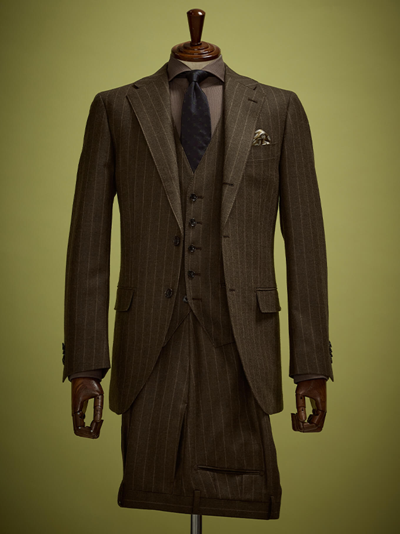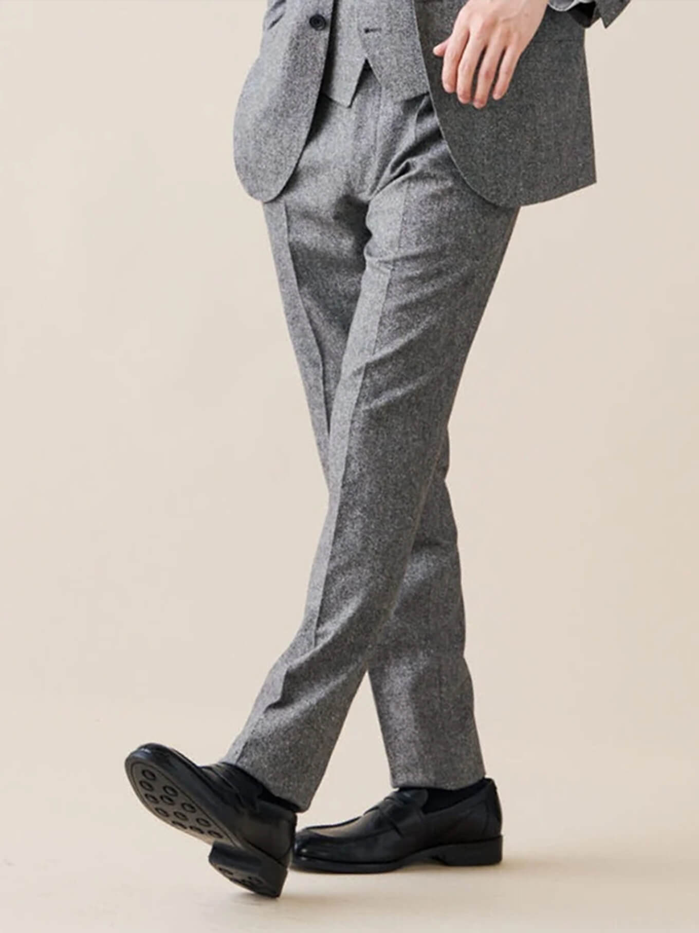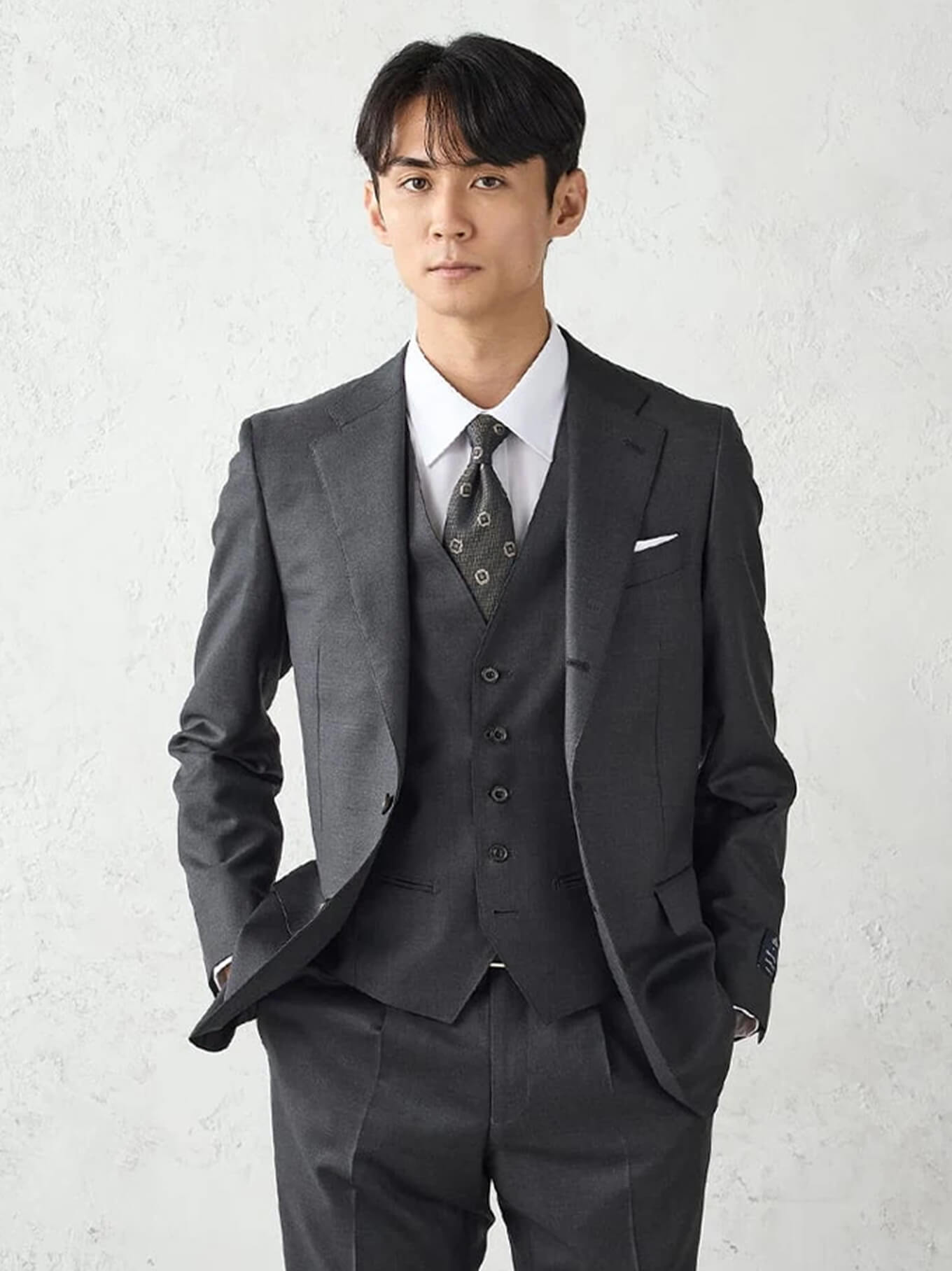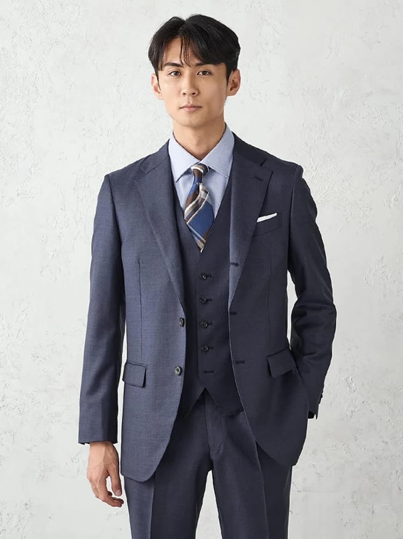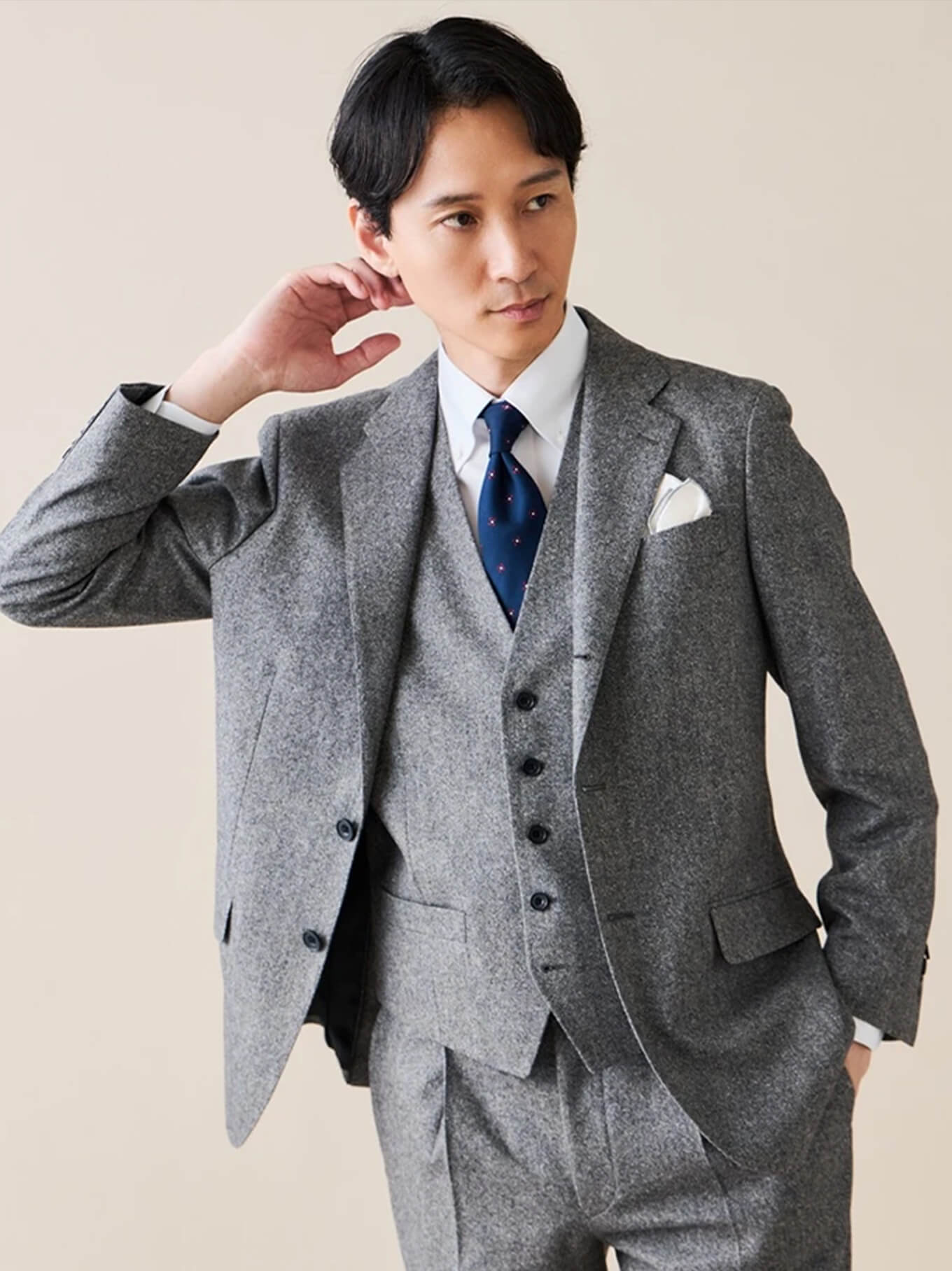 日本が世界に誇るウール産地・尾州。伝統の技と最新技術が融合した、繊細で柔らかな風合いが魅力です。「MADE IN JAPAN」の誇りを感じる一着に仕上げました。