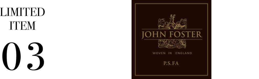 1819年創業、英国・ヨークシャーの老舗ファブリックメーカー。ブリティッシュらしいハリとコシ、クラシックな表情が際立ちます。気品ある佇まいで、フォーマルにもふさわしい仕立て映えを実現。