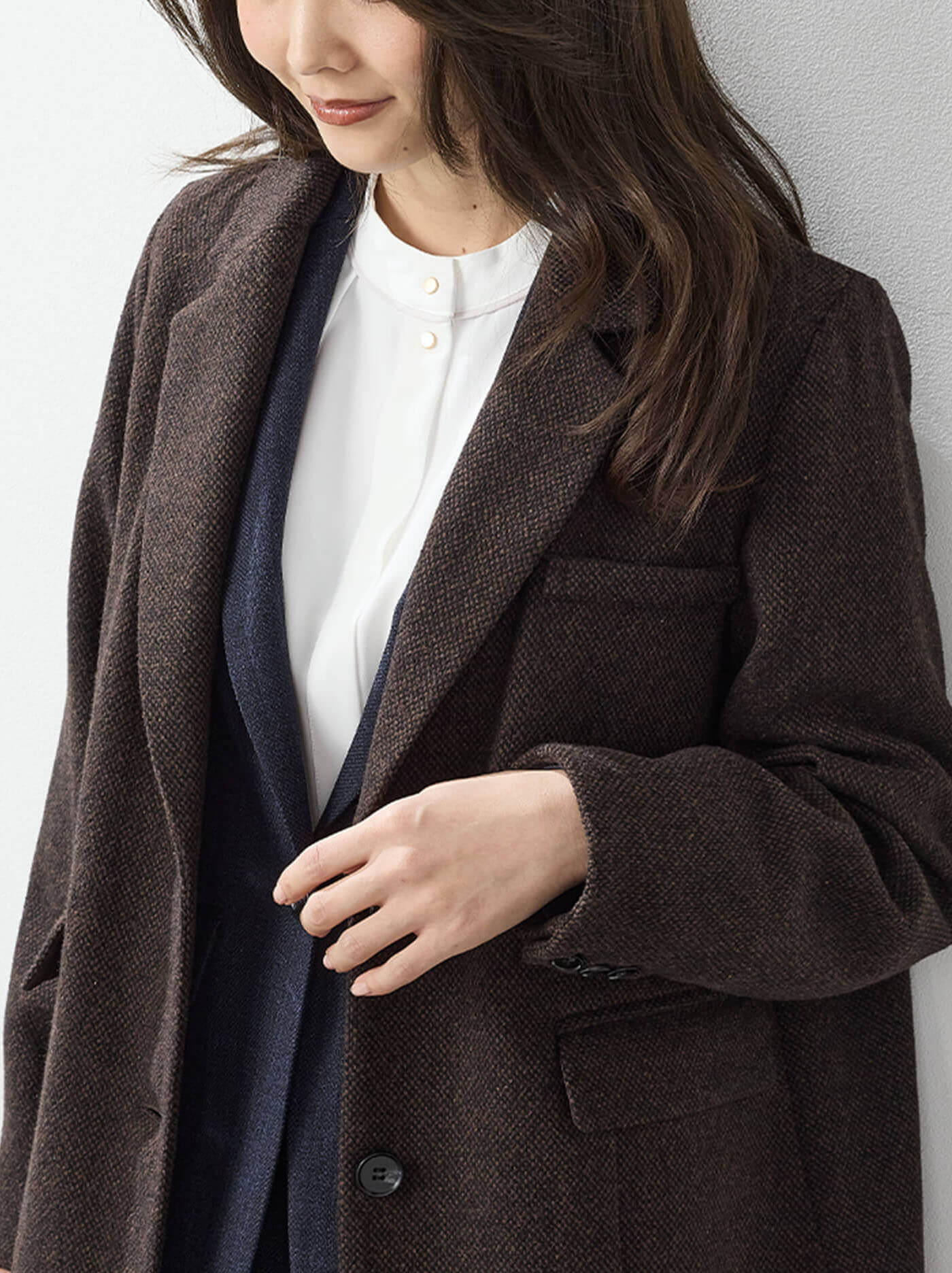 冬本番でもあたたかく、ウールホームスパン仕立てならではの