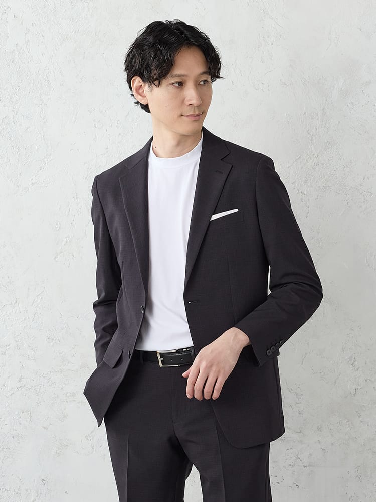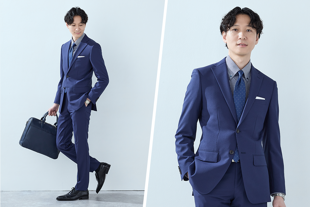 従来の「スーツは窮屈で動きにくい」というイメージを解消するため、WEB限定スーツは4WAYストレッチ生地を使用しています。