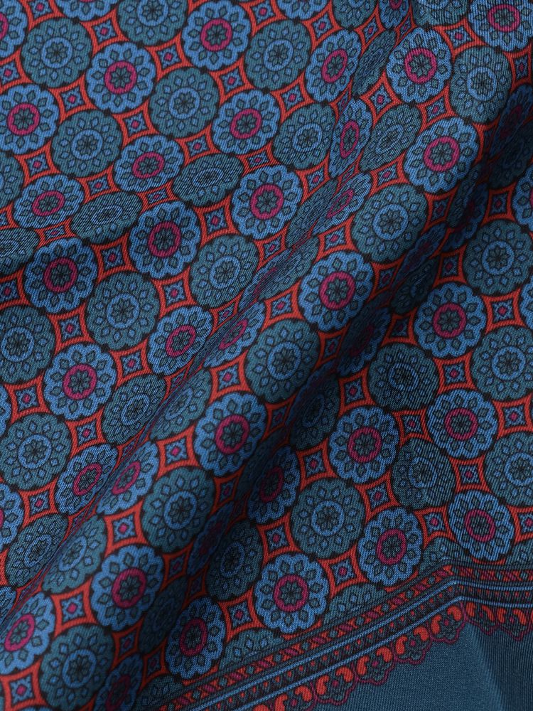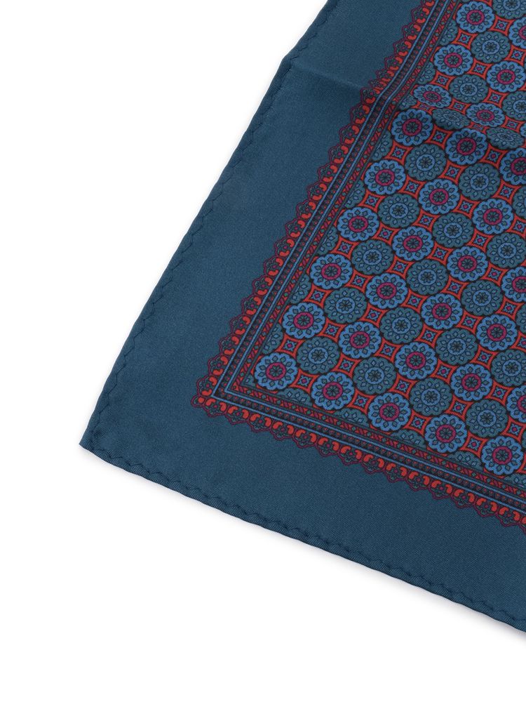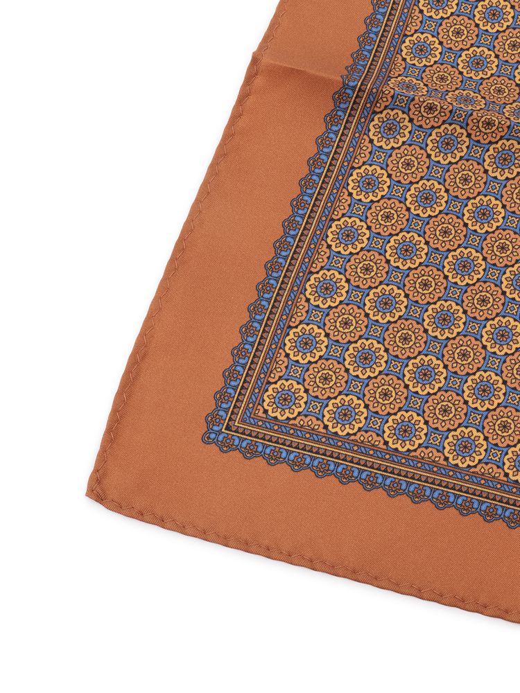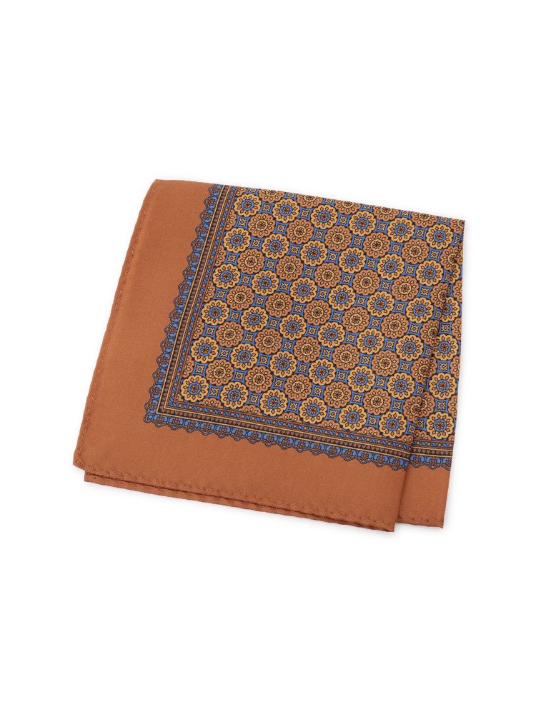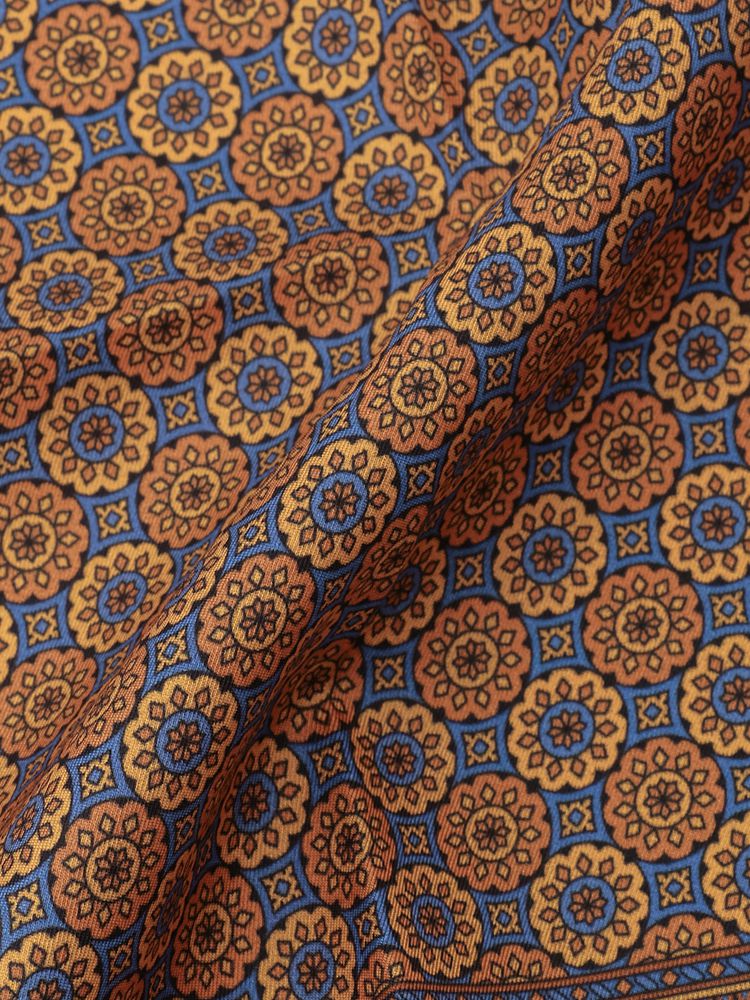 シルクプリントチーフ 小柄 オレンジ/ネイビー(オレンジ)
