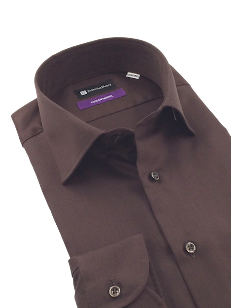 【ノンアイロン】長袖ワイシャツ【アーバン】デニムライクウィングカラーブラウン/ブルー