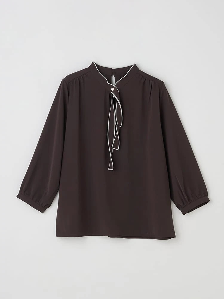 肌触りのよい生地感が魅力のスタンドカラーブラウスです。