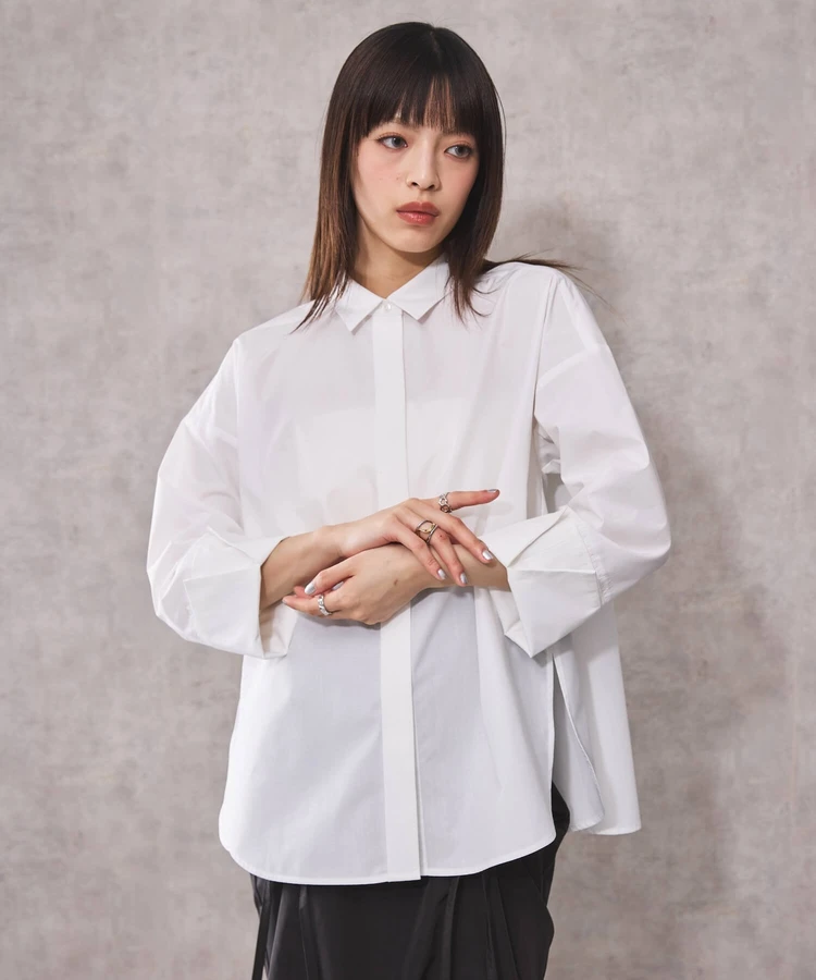 <完全ノーアイロン>アイシャツブラウス無地スキッパーホワイト〈2BUY10%OFF〉