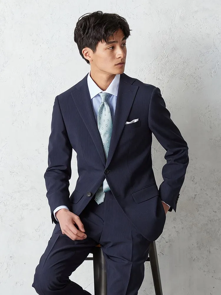 【上下洗える】WEB限定スーツ4WAYストレッチストライプネイビー
