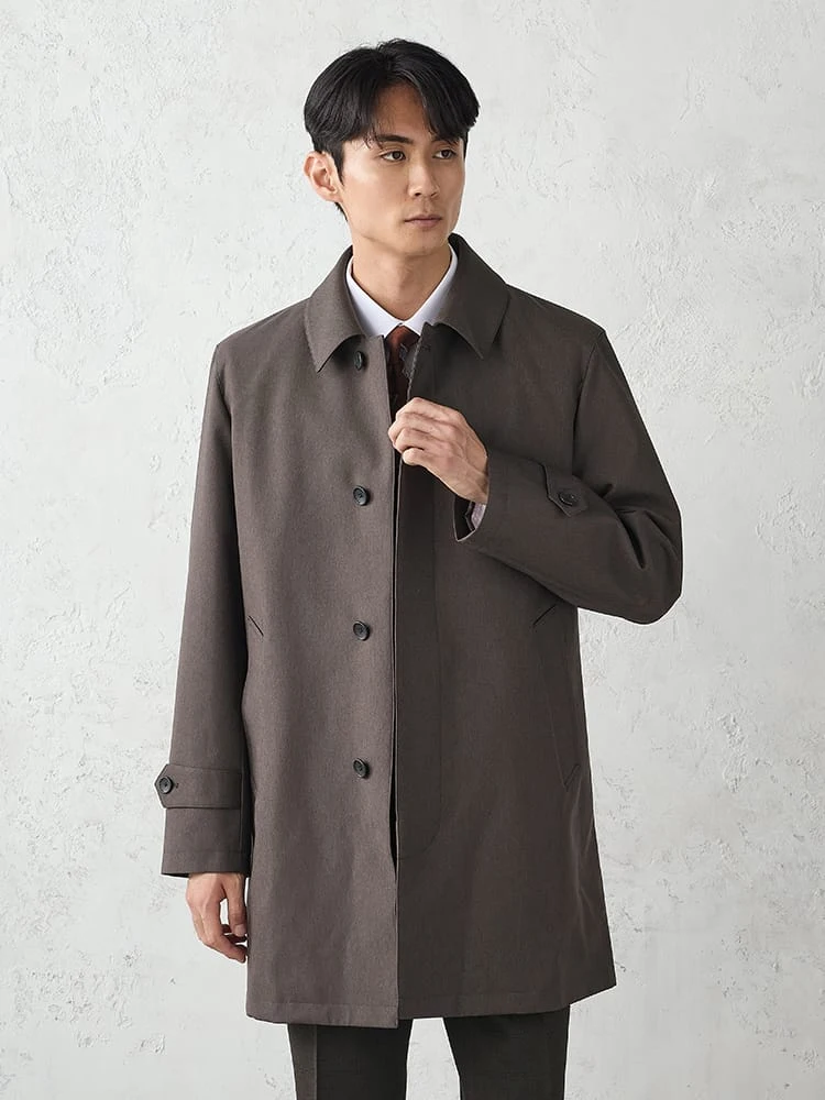 熱を吸収しながら蓄えて放出する機能素材「TRIZAR」を採用した、ステンカラーコート。