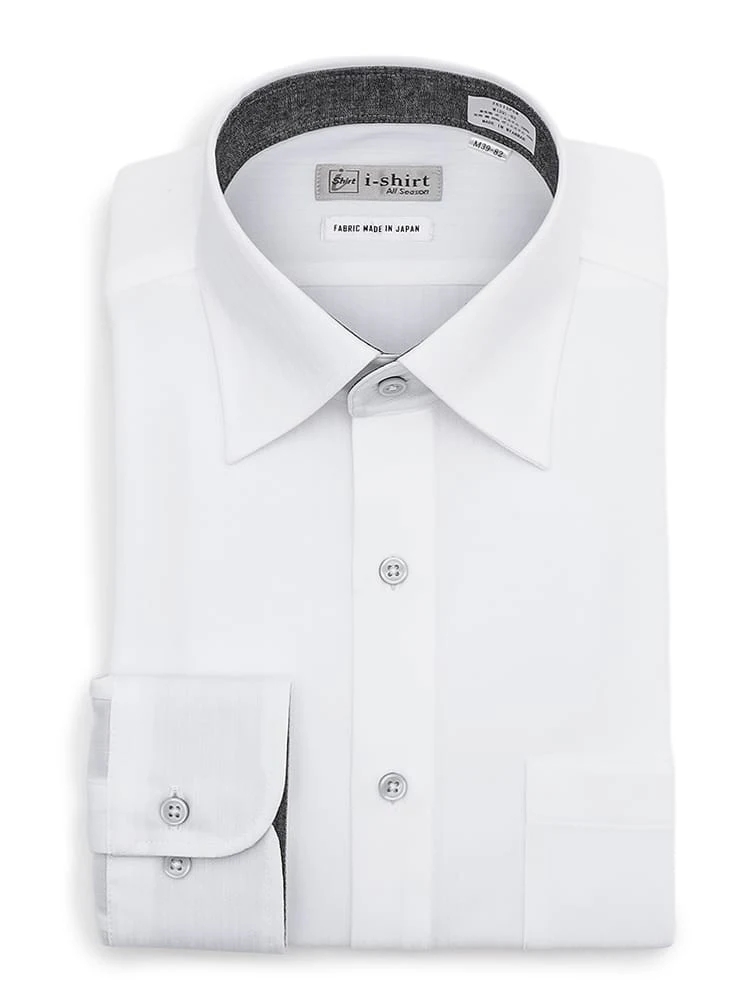 【完全ノーアイロン】長袖アイシャツへリンボン別布仕様ホワイト