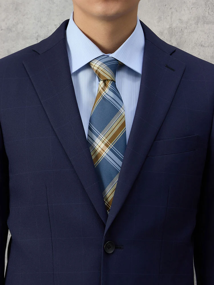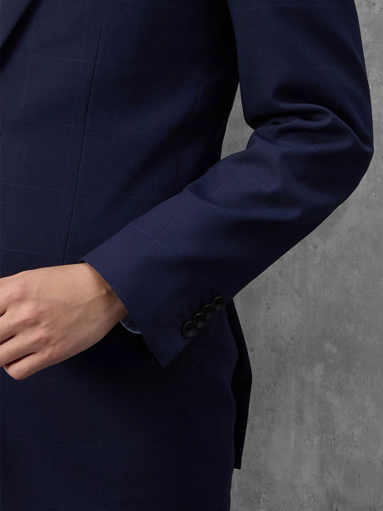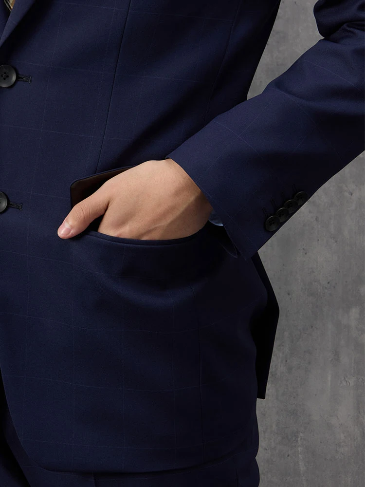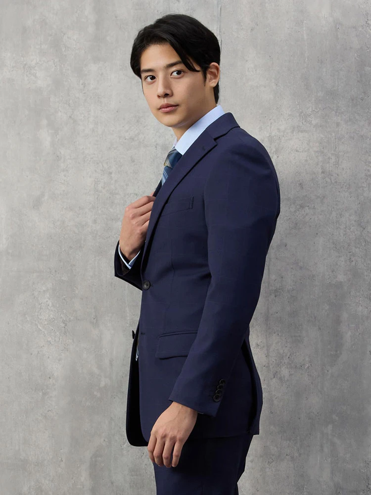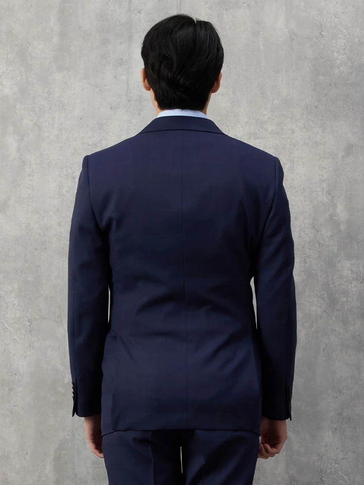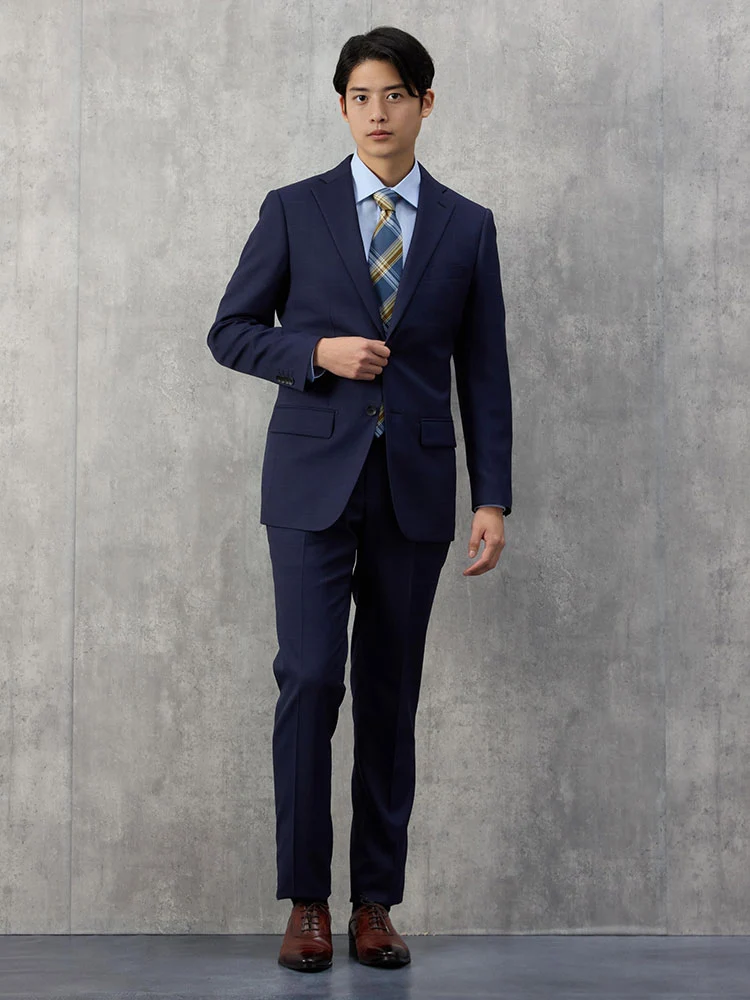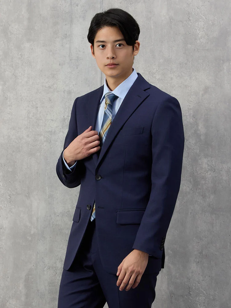 【上下洗える】2ボタンスーツ【クラシコ】ウィンドペン ネイビー
