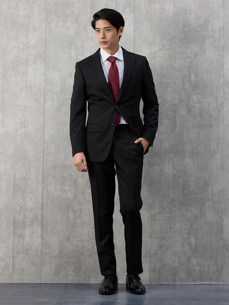 《WASHSUIT》WEB限定スーツ【洗える/4WAYストレッチ】織柄ブラック