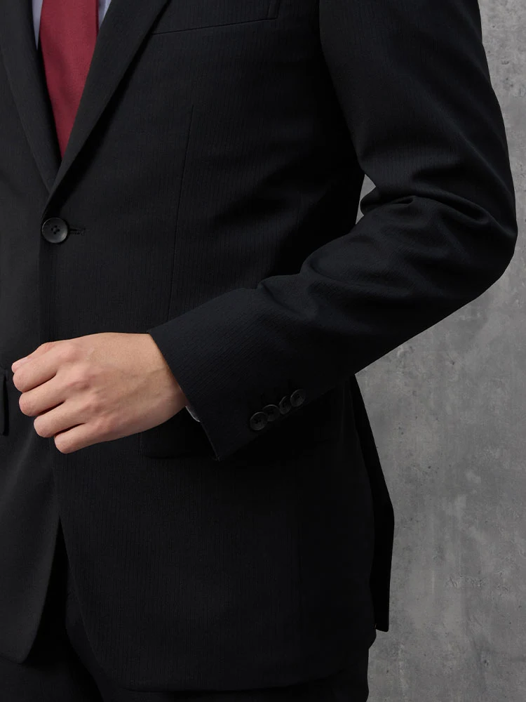 【上下洗える】2つボタンスーツ【クラシコ】コードストライプブラック
