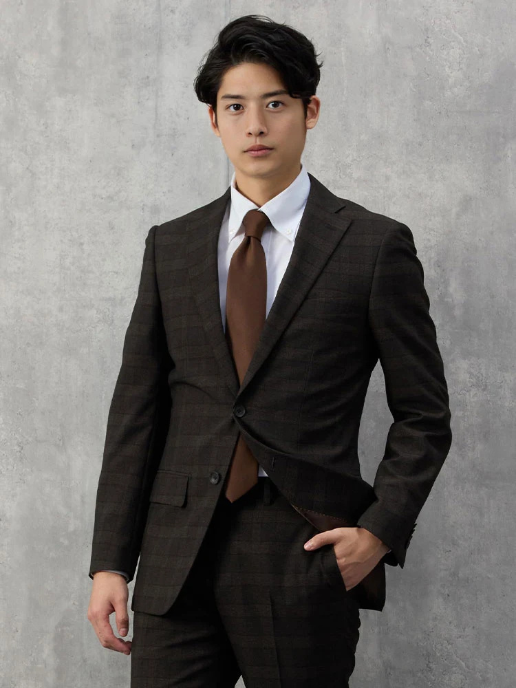 【上下洗える】2ボタンスーツ【クラシコ】グレンチェックブラウン