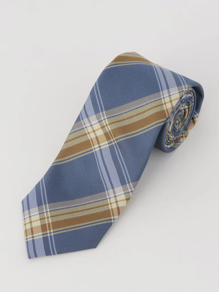 トラッドなチェック柄に差し色をプラスすることでモダンな表情に仕上げたネクタイ。