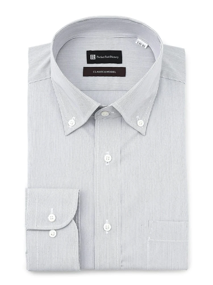 【完全ノーアイロン】長袖アイシャツドット別布仕様ボタンダウンホワイト/グレー<3点で2,000円OFF対象>