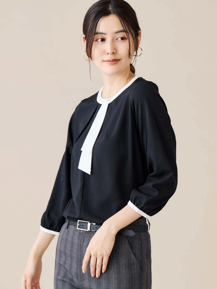配色ボウタイブラウスオフホワイト/ブラック/ピンク/ベージュ〈2BUY10%OFF〉