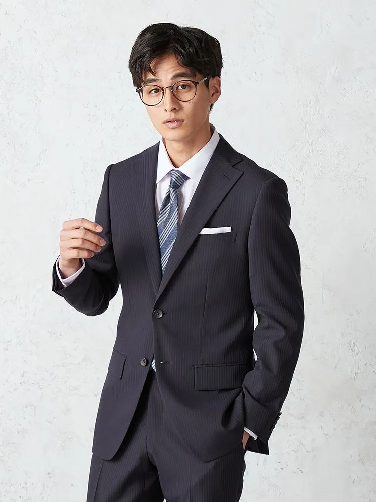 【上下洗える】WEB限定スーツ4WAYストレッチシャドーストライプネイビー