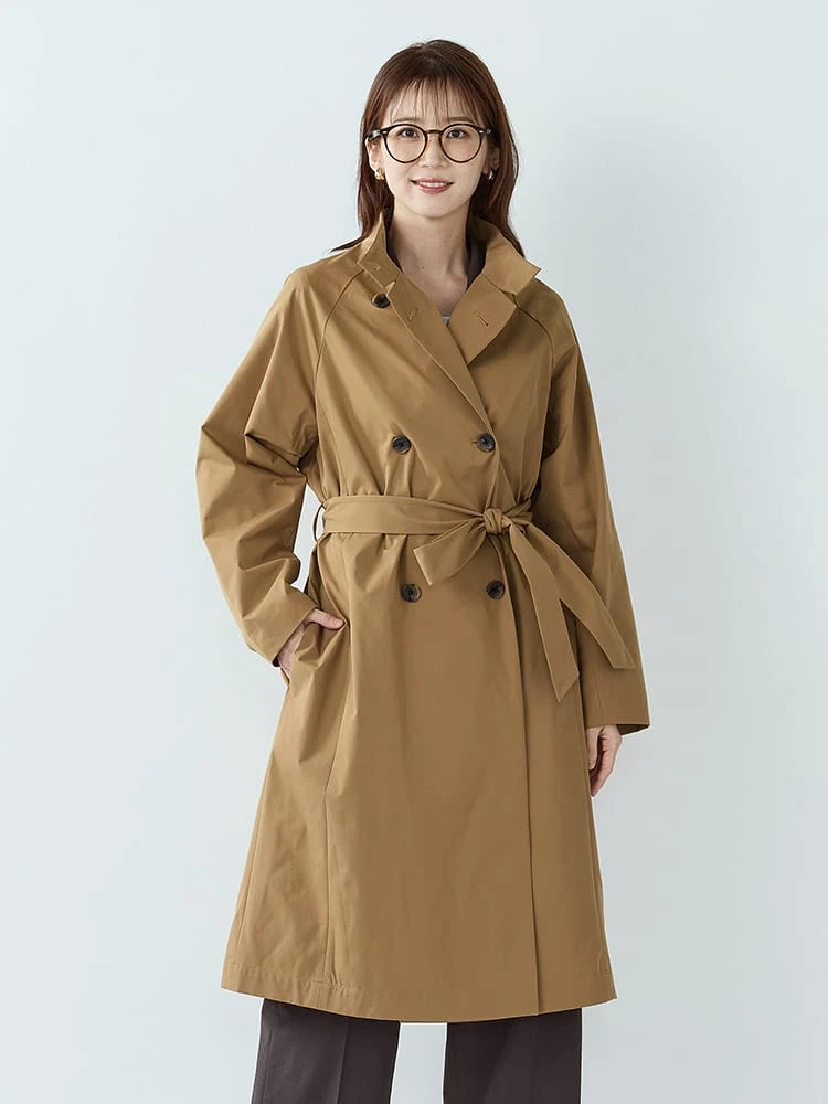 ツイルストレッチライナー付きAライントレンチコートベージュ/ネイビー
