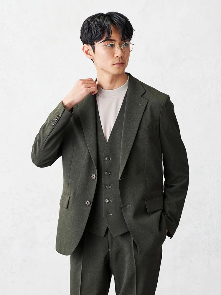 同シリーズのベスト、スラックスと、3着揃えておくのがおすすめです。