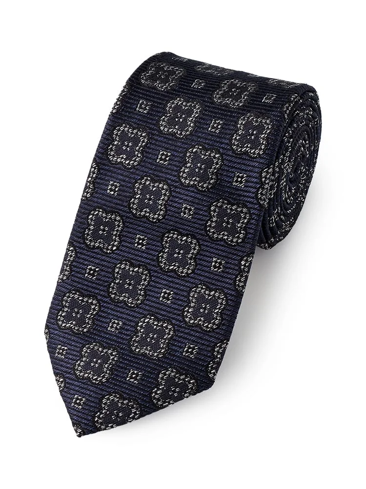 インポート生地ネクタイシリーズフラワー柄ブラウン/ネイビー