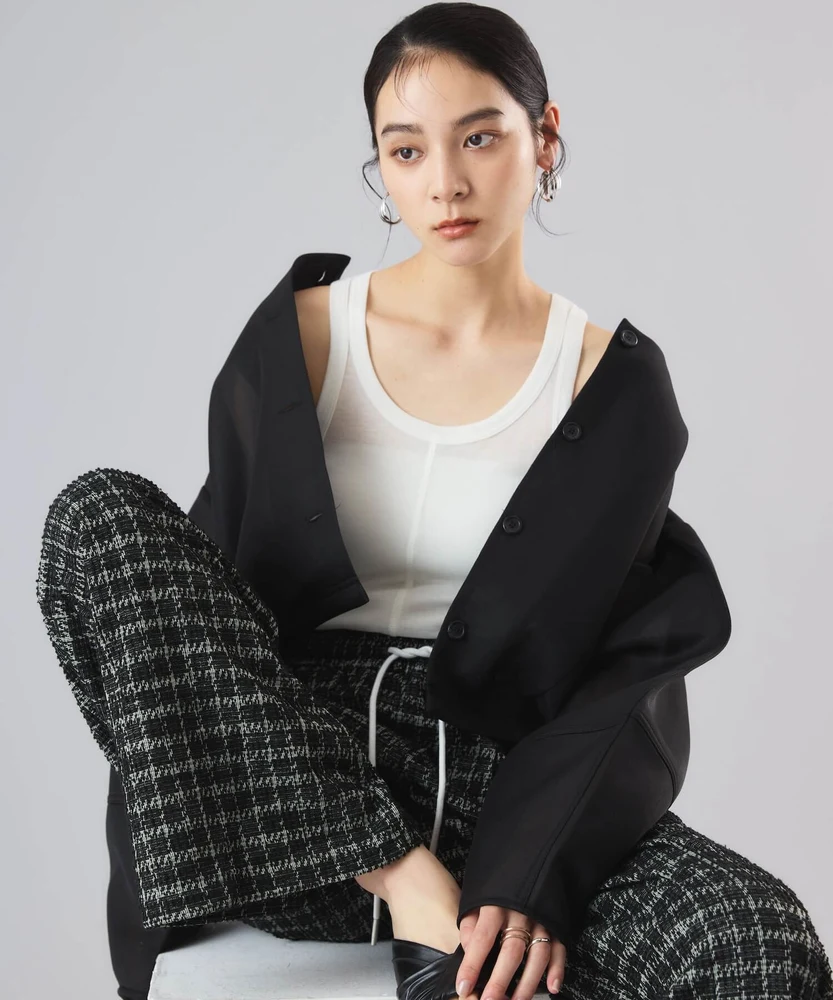 セットアップのインナー使いや定番デニムパンツ合わせのアクセントになる1枚