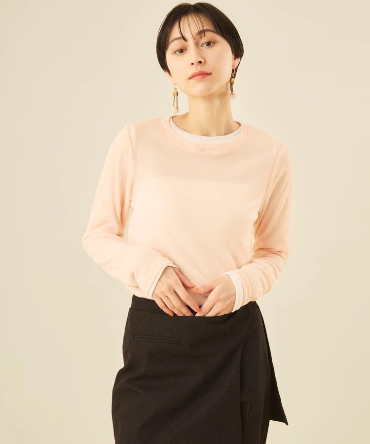 ジャスト丈のサイズ感で、薄手でごわつきにくく絶妙な透け感が綺麗見えする万能ロンT。