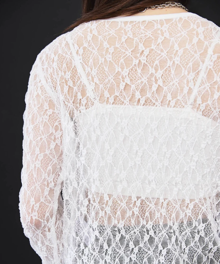 レースカーディガンがさりげないエッジを加えます。