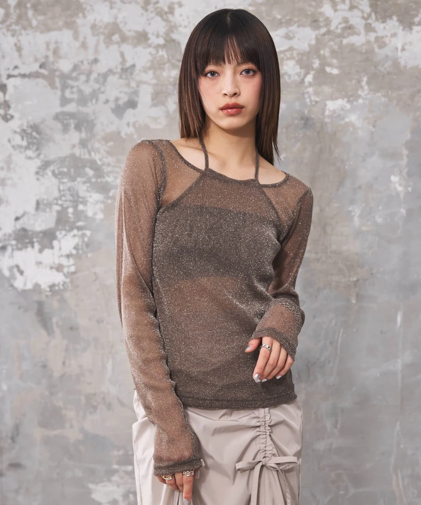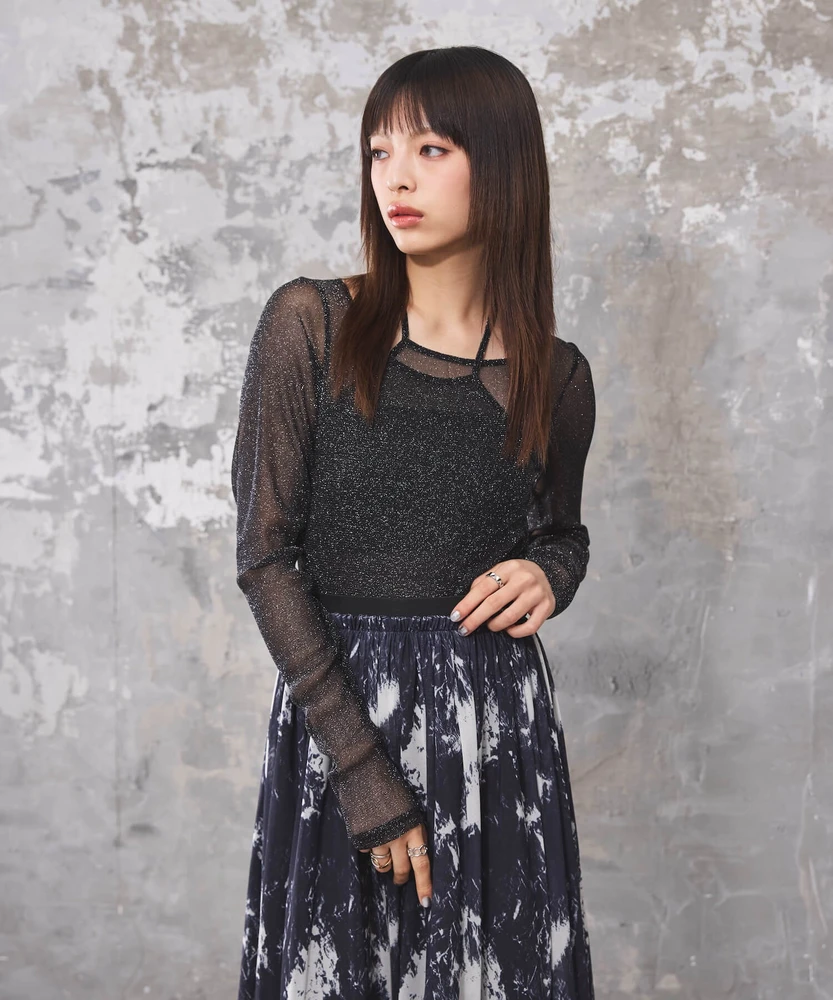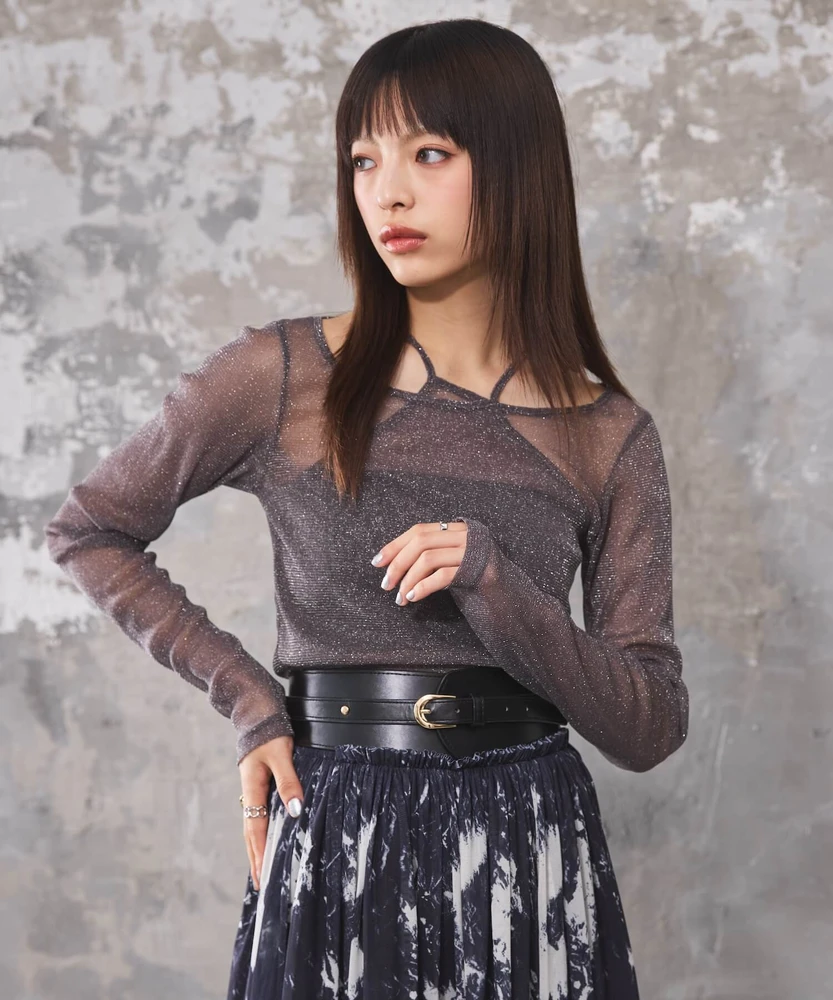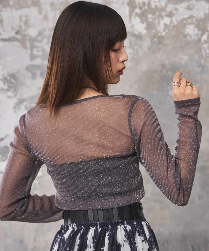 ラメ入りシアートップスがそれぞれのシーンでお洒落かつかっこいいスタイルを引き立てます。