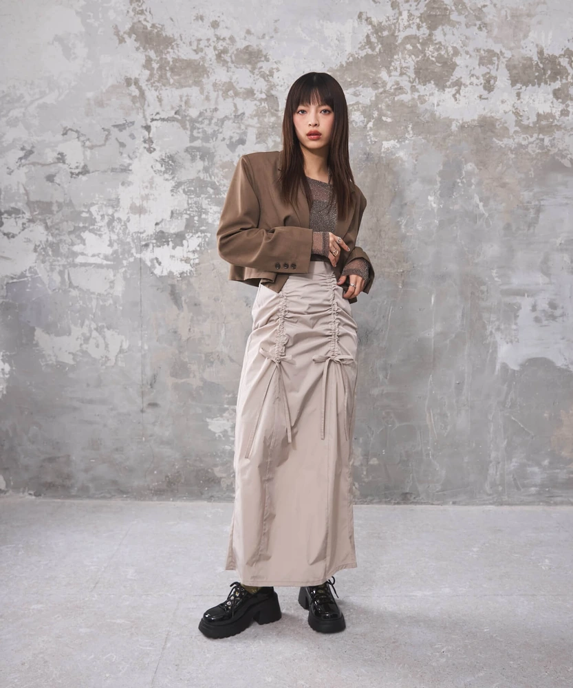 シンプルながらも存在感のあるデザインで、フェミニンからモードまで幅広いスタイリングに対応する万能な一枚です。