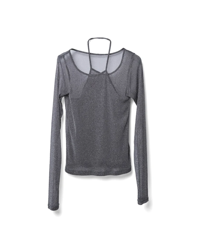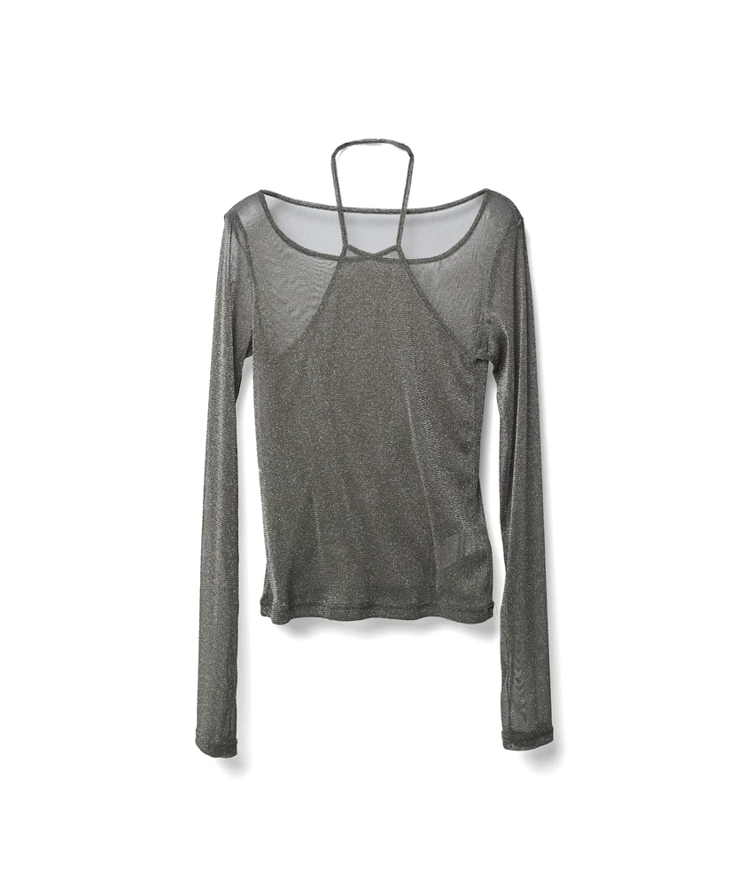 シンプルなシアートップスに、ラメを散りばめた特別な一枚。