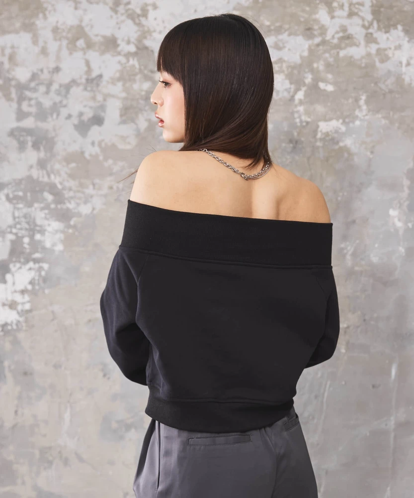 フロントジップ オフショルプルオーバー【DIP IN CHOCOLATE】(ブラック)