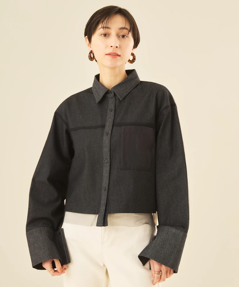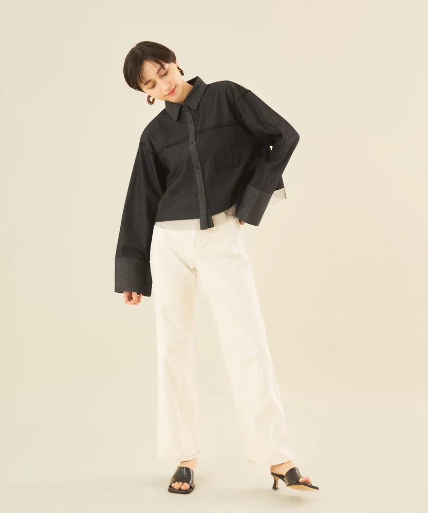 一枚で存在感ある今年らしい異素材ドッキングデニムシャツです。