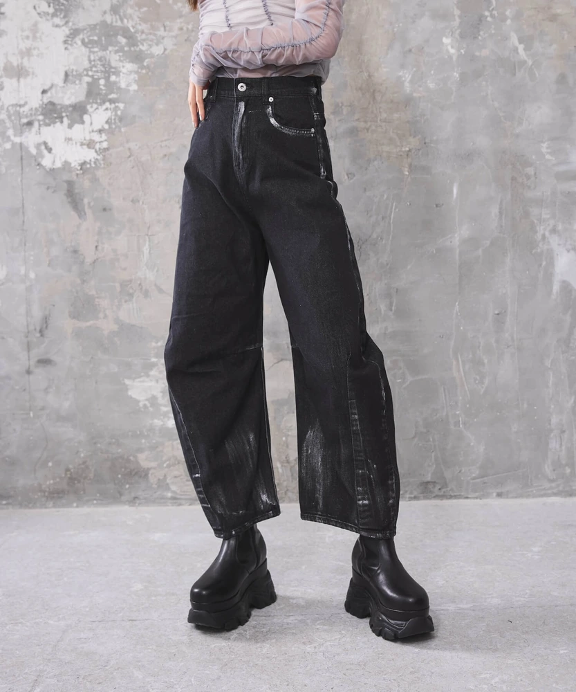 ラメプリントカーブデニム【DIP IN CHOCOLATE】(ブラック)