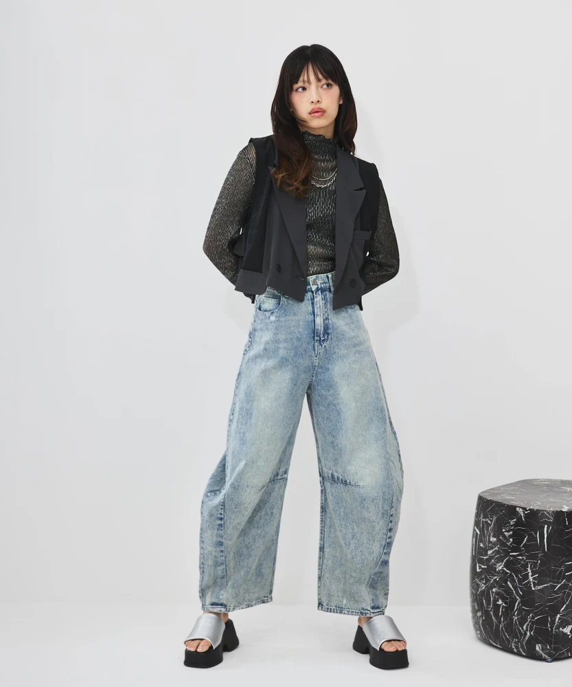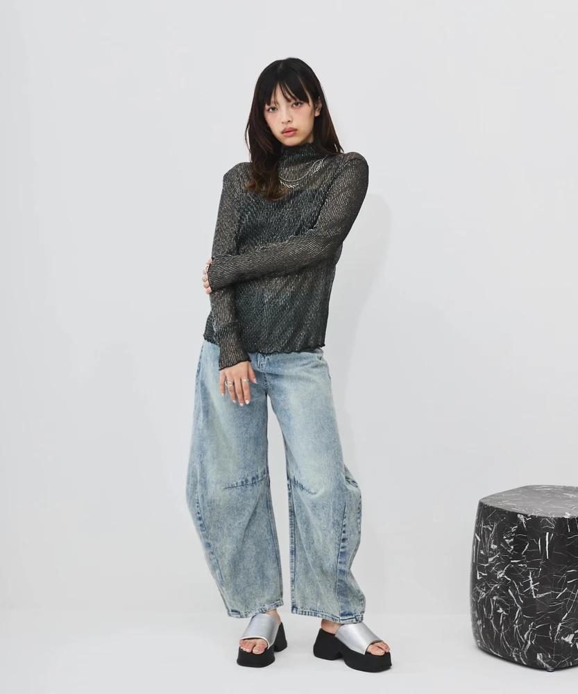 ラメプリントカーブデニムを使ったこれらのスタイリングを楽しんでください。