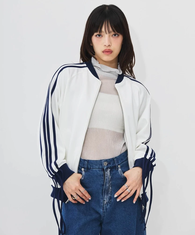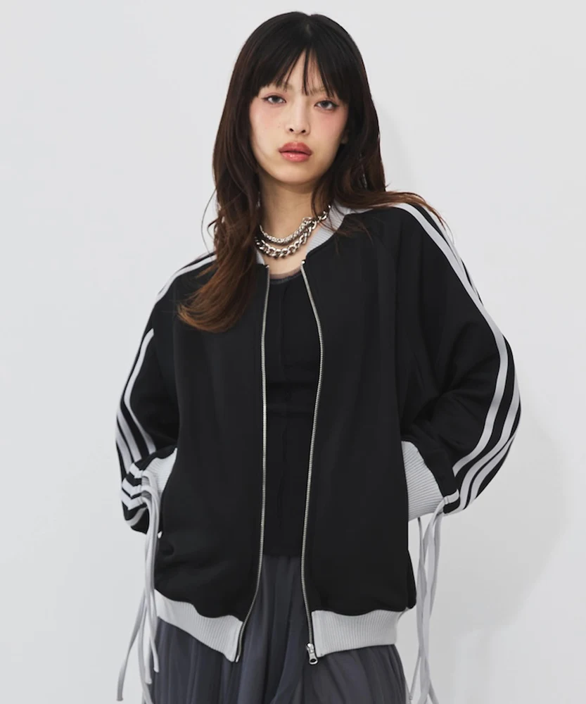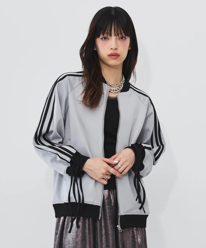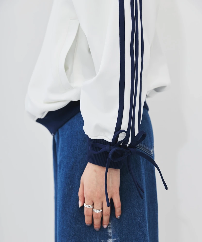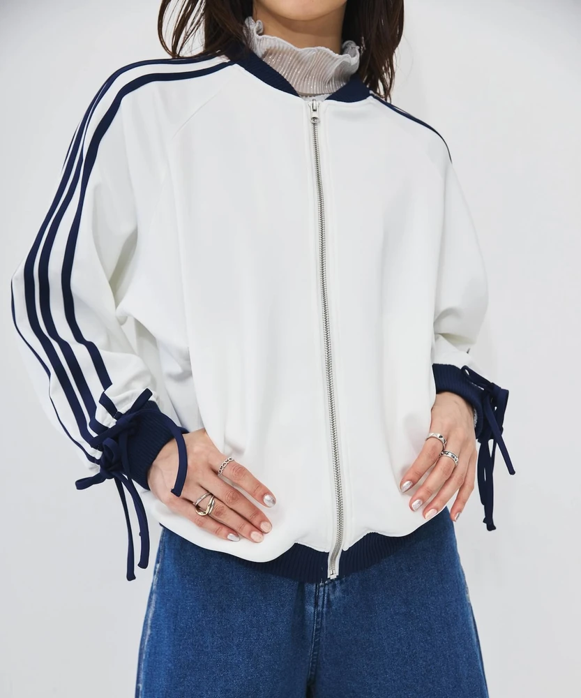 「袖リボントラックジャケット」は、スポーティなデザインにフェミニンなエッセンスを加えた春先にぴったりな一枚です。