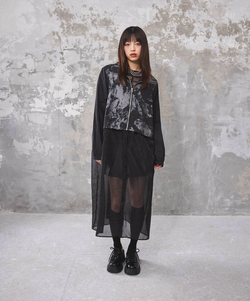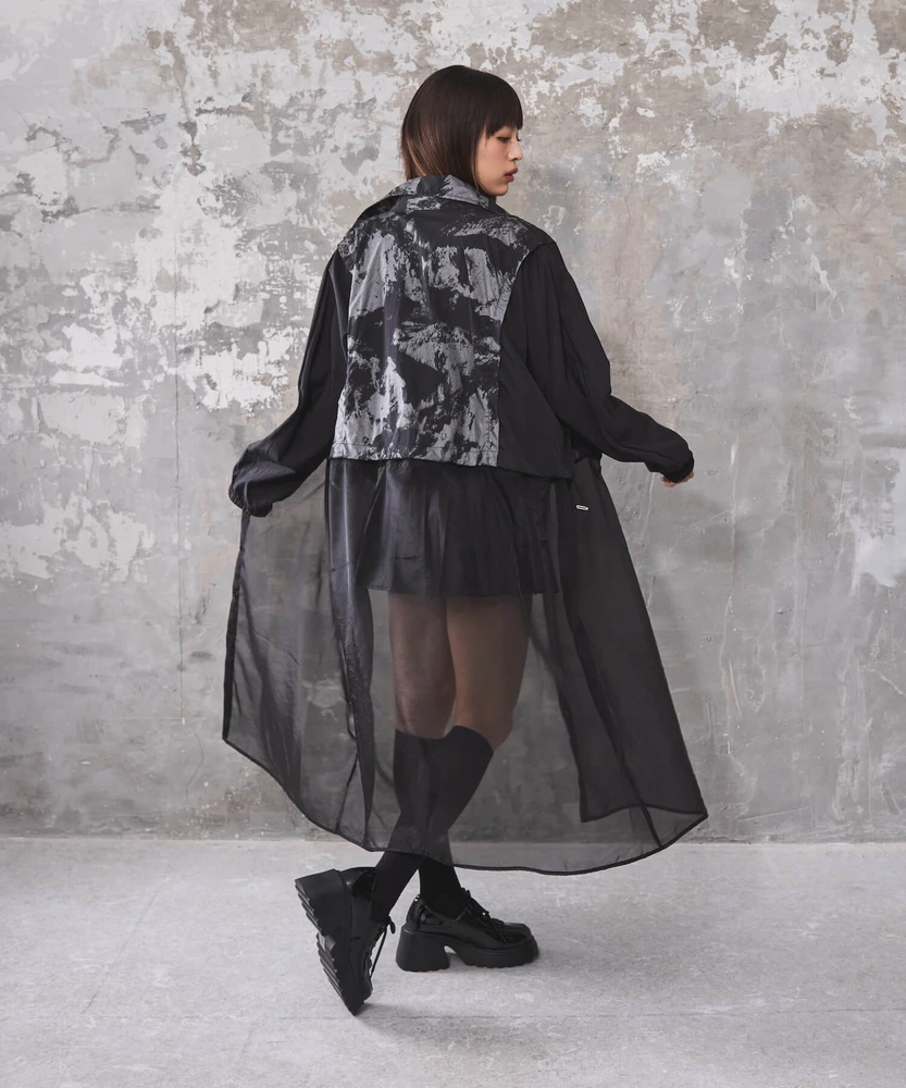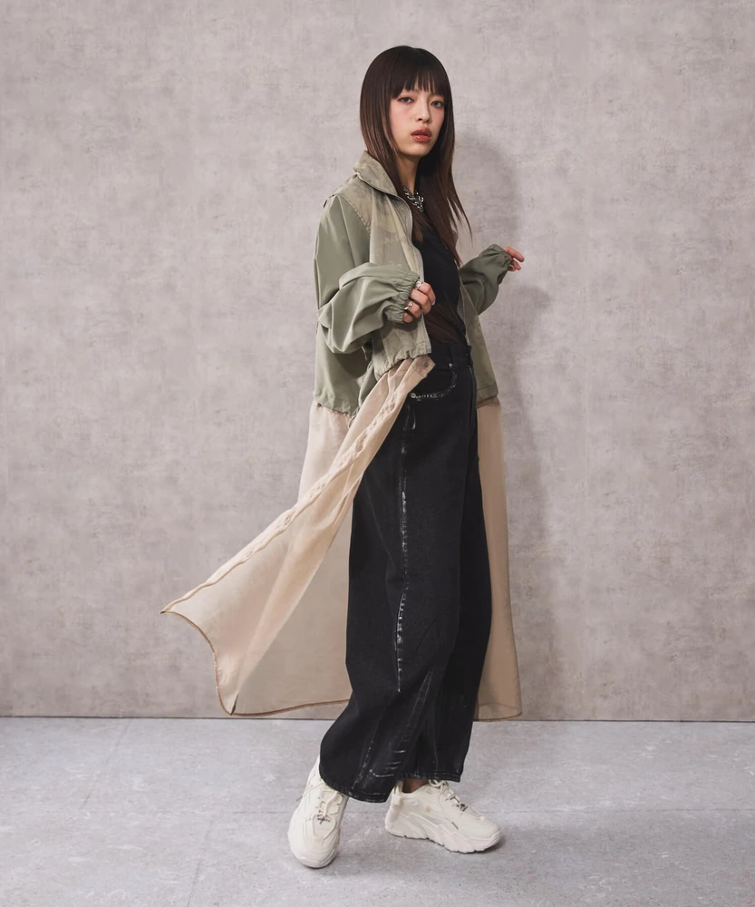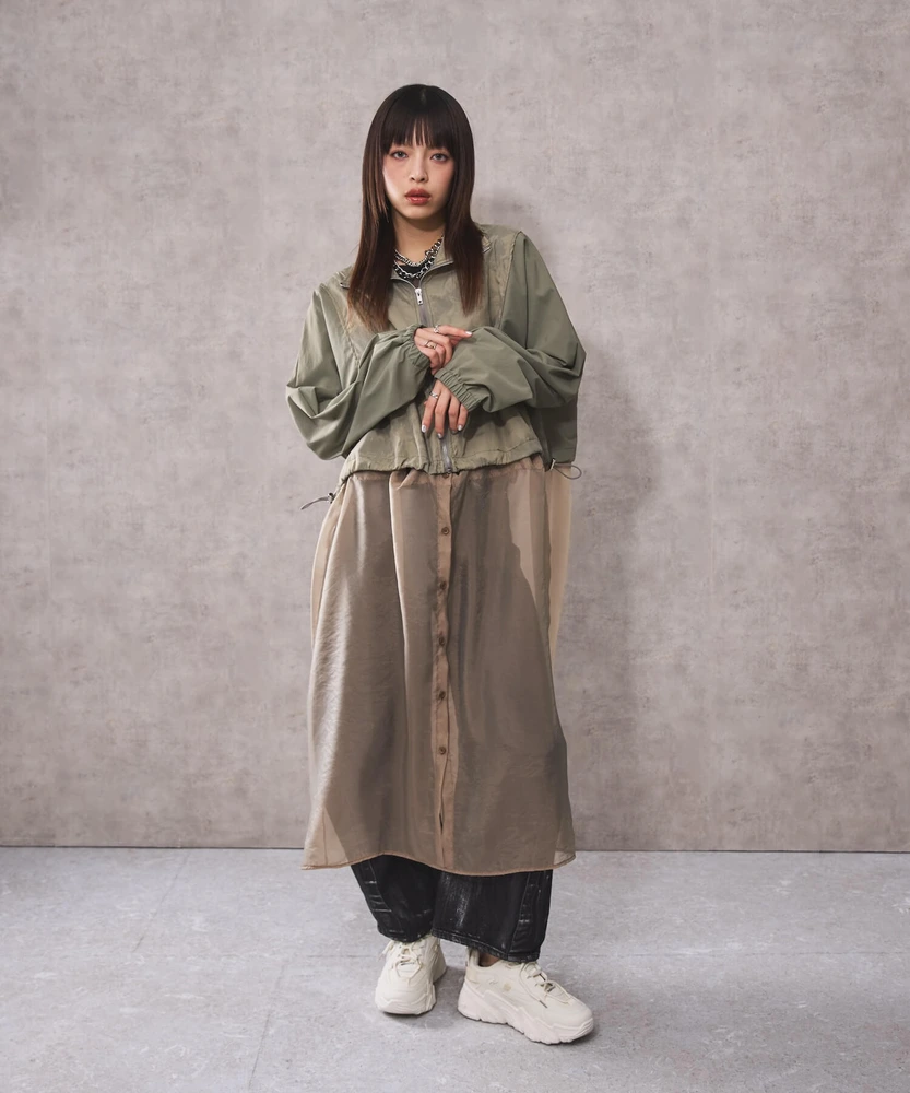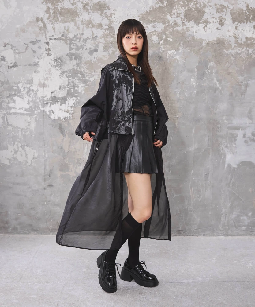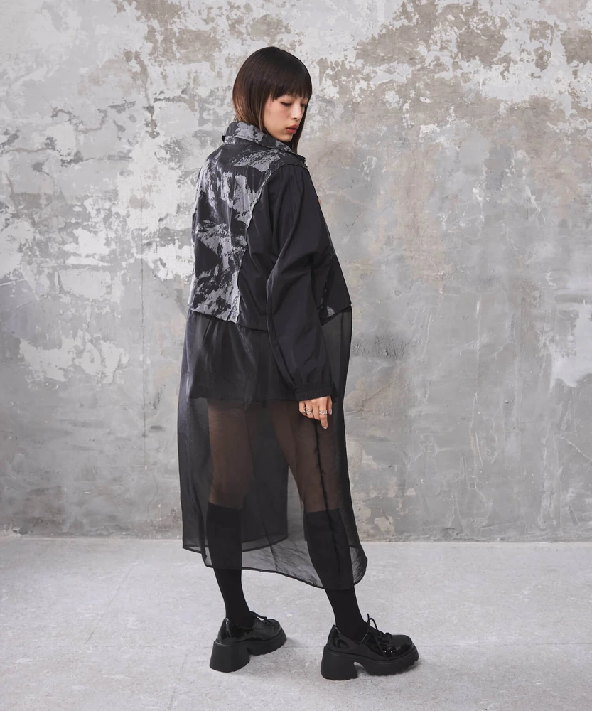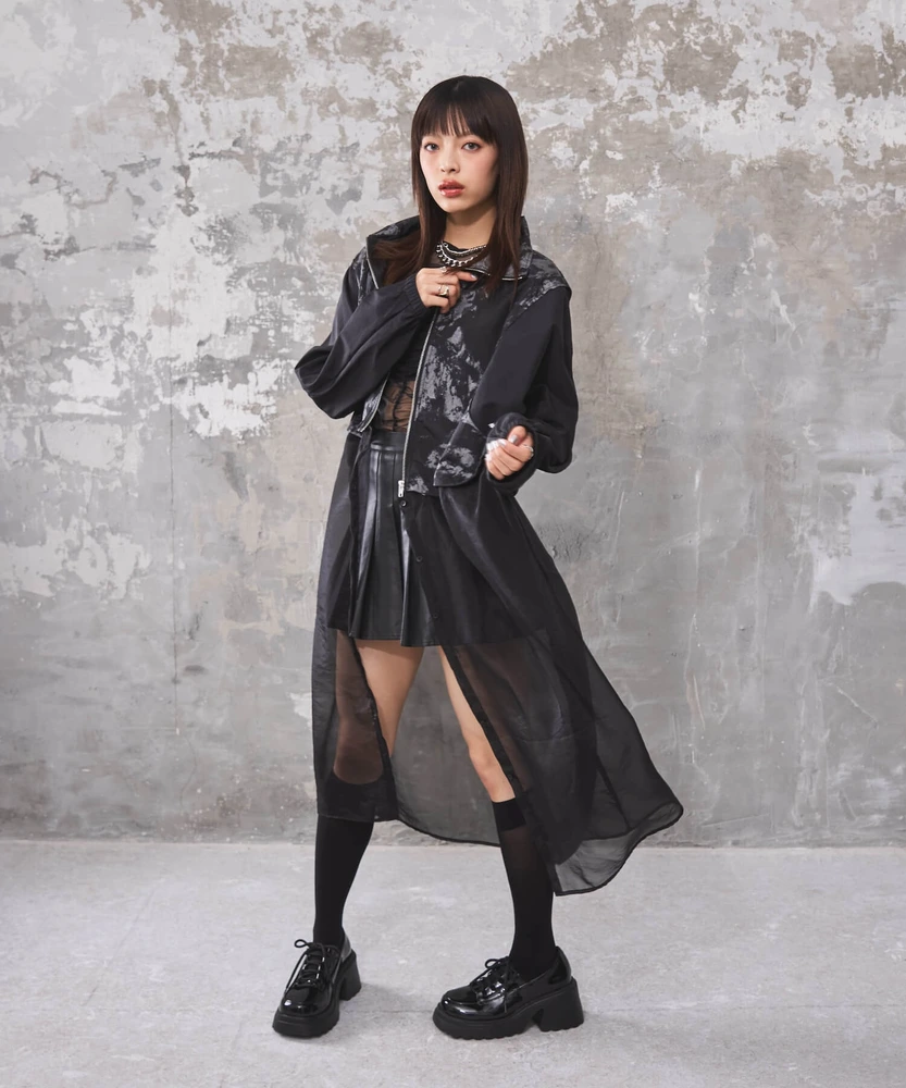 オーガンジー部分は取り外し可能で、全部取ってブルゾンとしてシンプルに着こなせるほか、