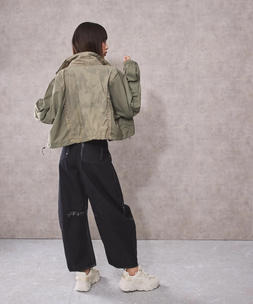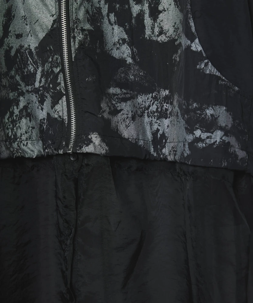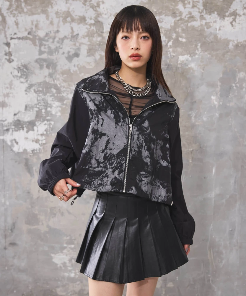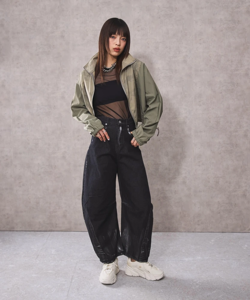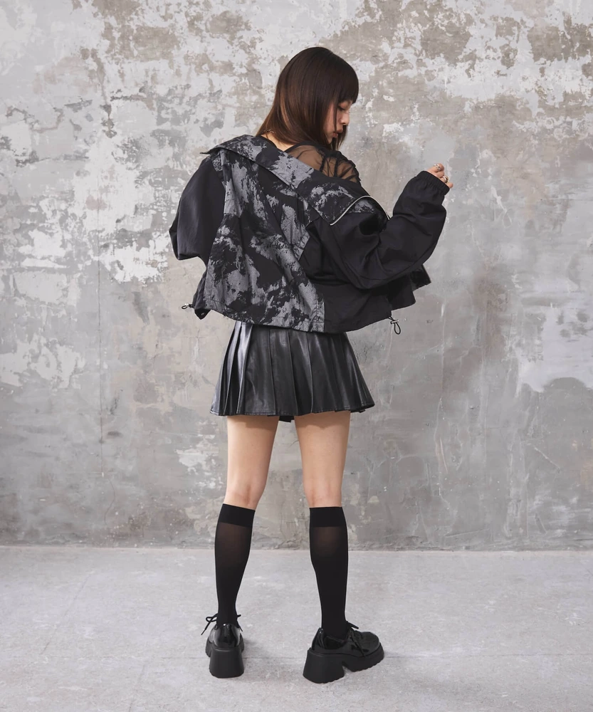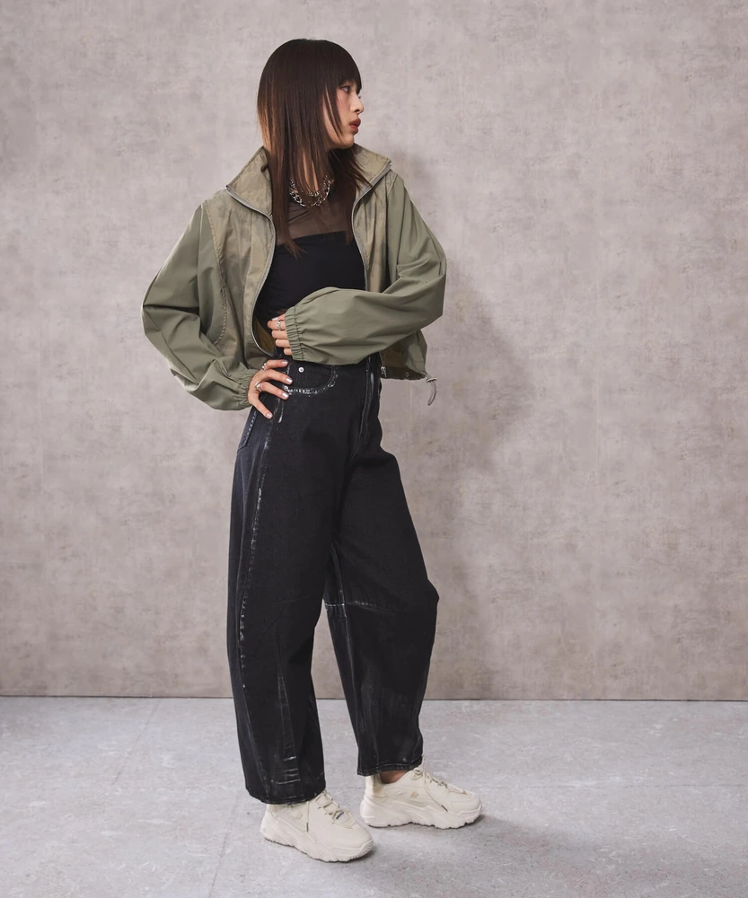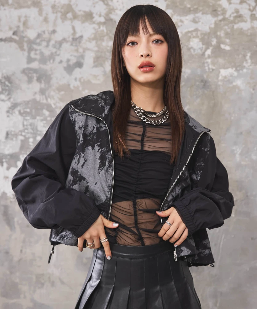 オーガンジー部分は取り外し可能で、全部取ってブルゾンとしてシンプルに着こなせるほか、