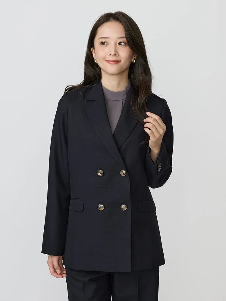 シルク混リクルートスーツジャケット無地ブラック
