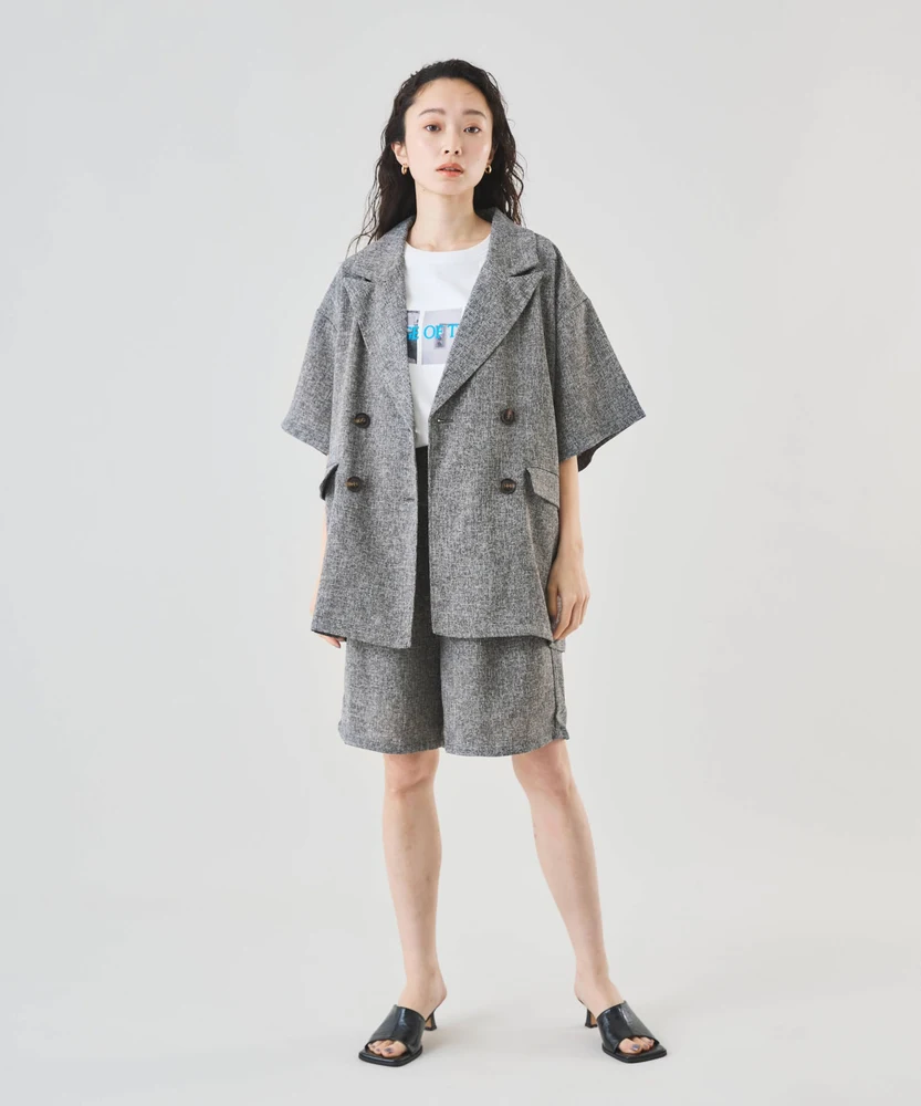 【セットアップ可】サマーツイードタックハーフパンツ【Muscat(マスカット)】(L.グレー)