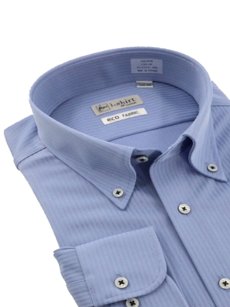 【完全ノーアイロン】長袖アイシャツブライトスクエアサックス<2点で1,000円OFF/3点で2,000円OFF対象>
