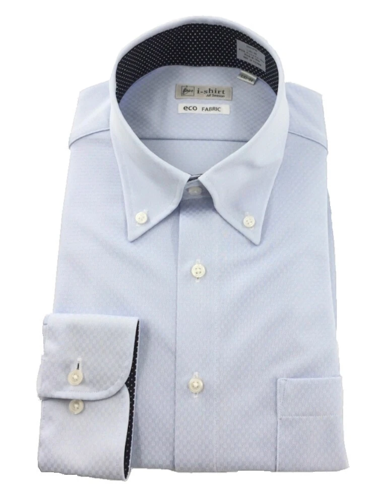 【完全ノーアイロン】長袖アイシャツセミワイドホワイト/サックスWEB限定<2点で1,000円OFF/3点で2,000円OFF対象>