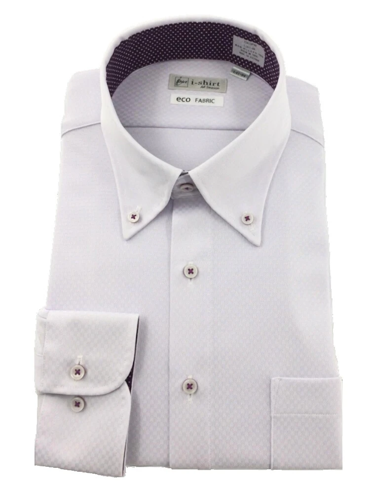【完全ノーアイロン】長袖アイシャツストライプ織セミワイドホワイト/ラベンダーWEB限定<2点で1,000円OFF/3点で2,000円OFF対象>