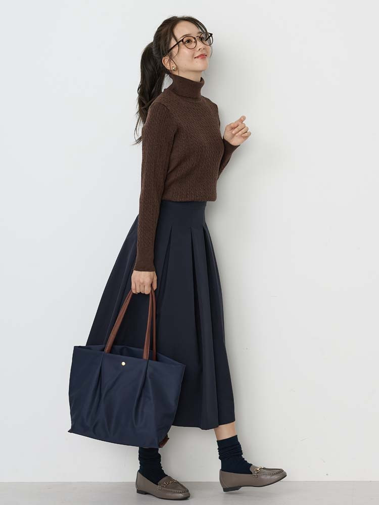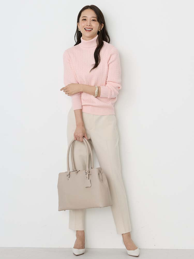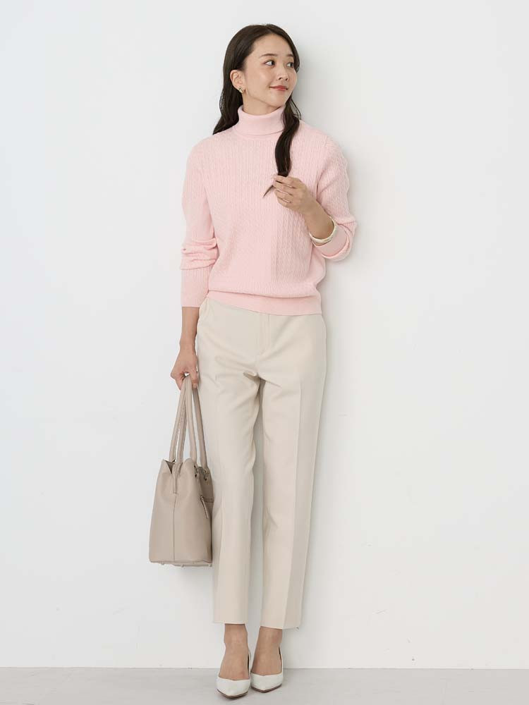 ケーブルタートルネックニットオフホワイト/ブラック/グレー/ピンク/ブラウン〈2BUY10%OFF〉