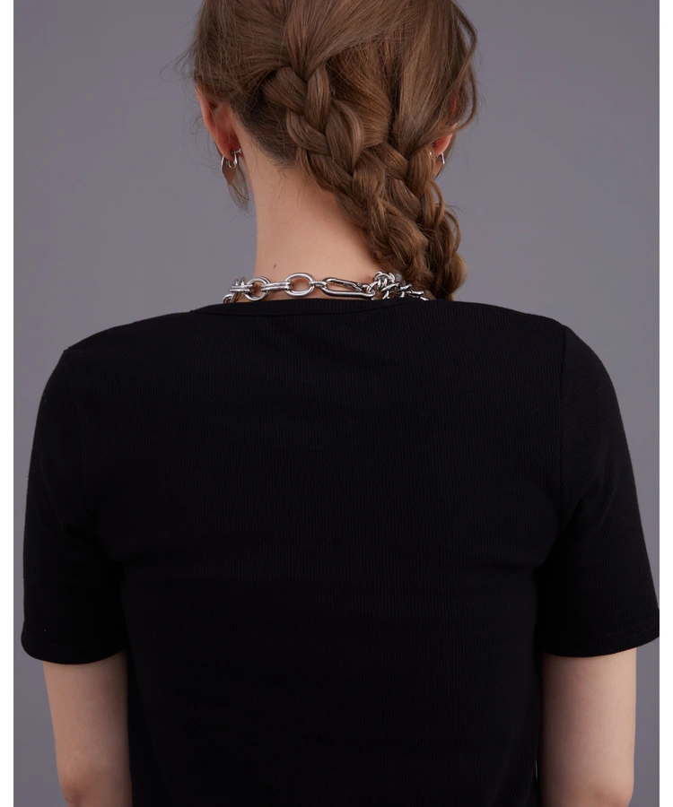 シアーシャーリングドッキングクロップドTシャツ【DIPINCHOCOLATE】