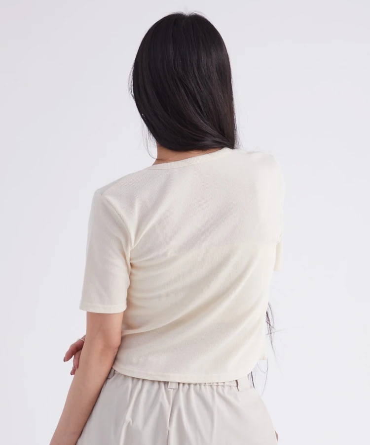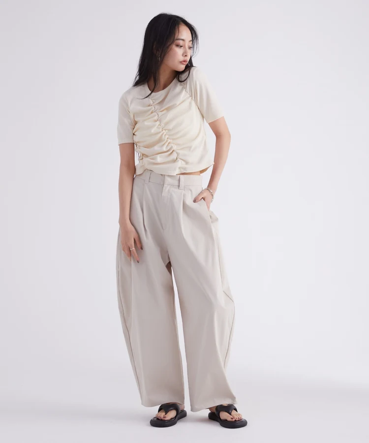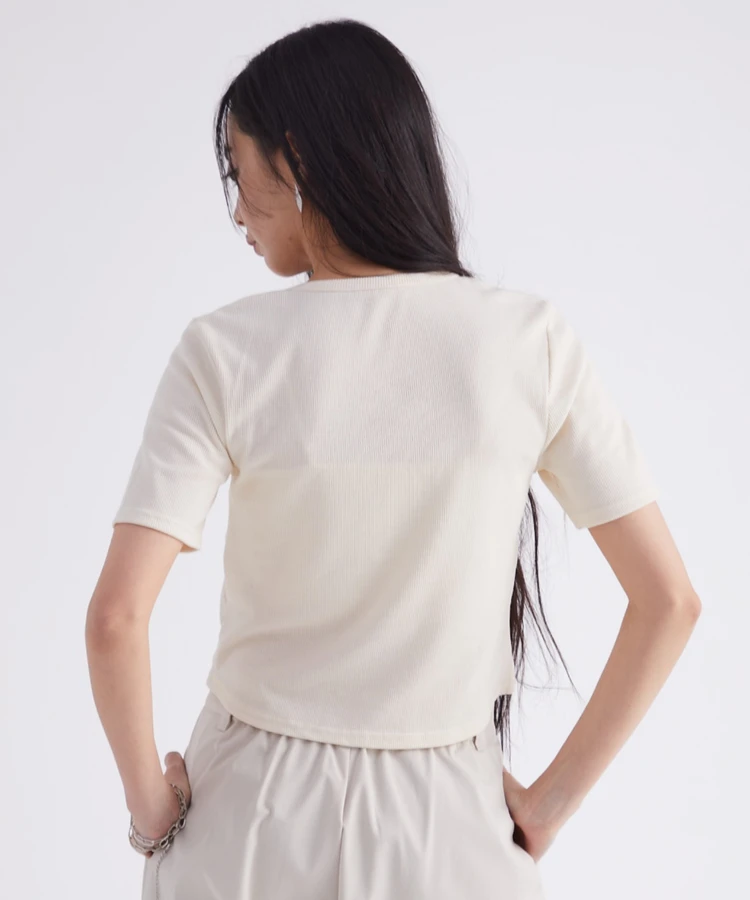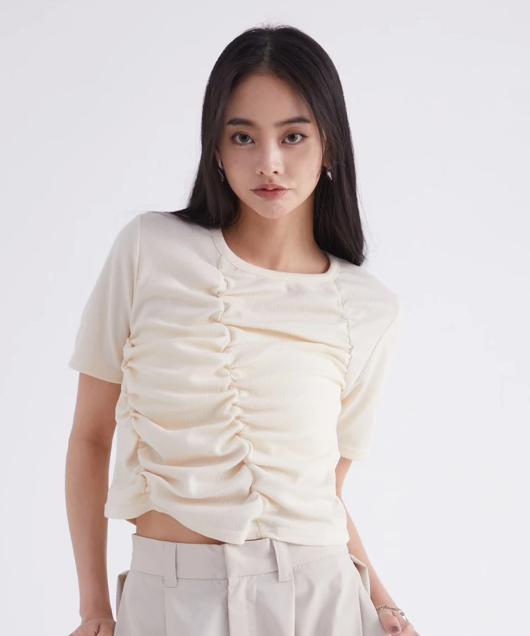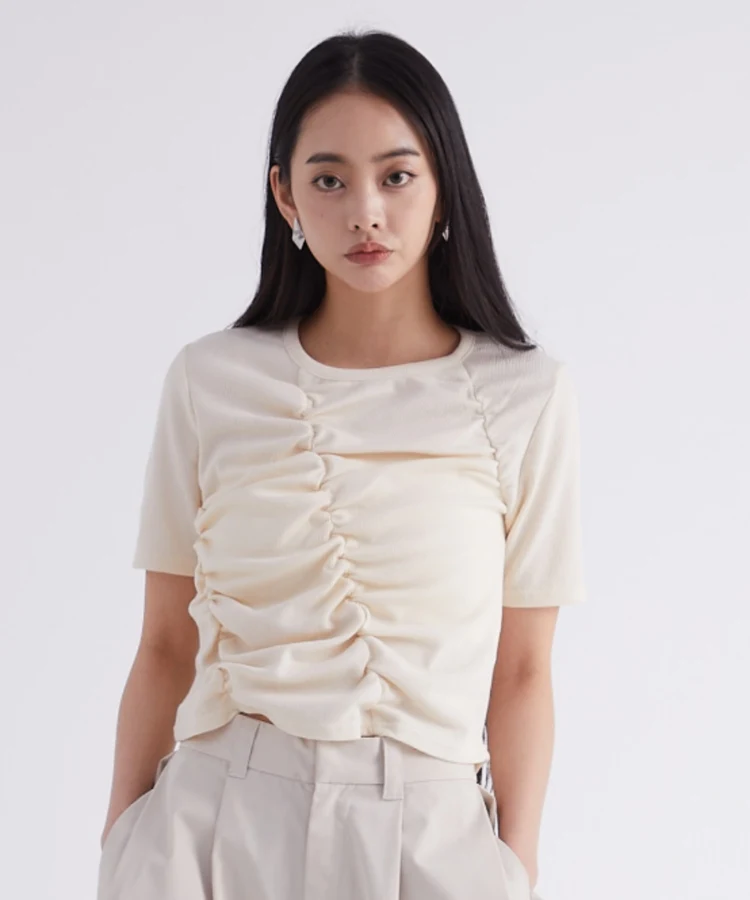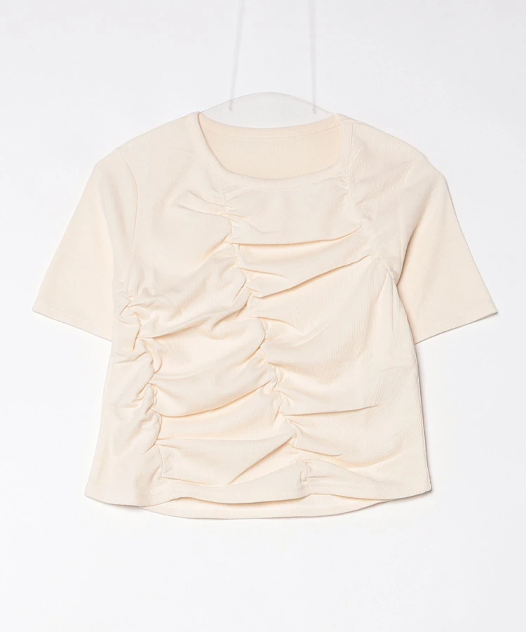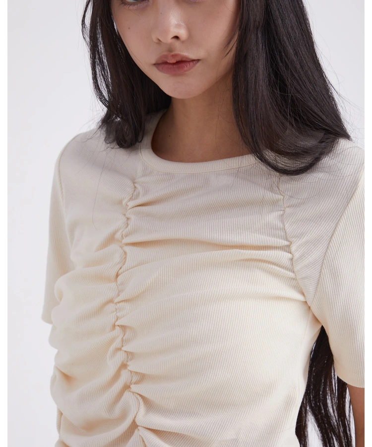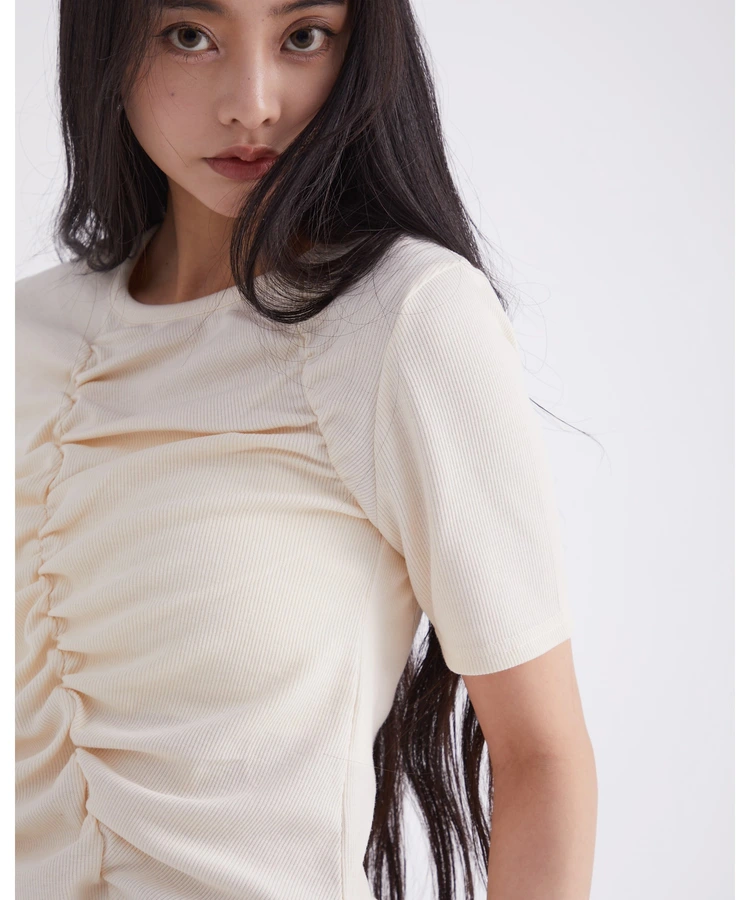 フロントギャザーリブTシャツ【DIP IN CHOCOLATE】(クリーム)