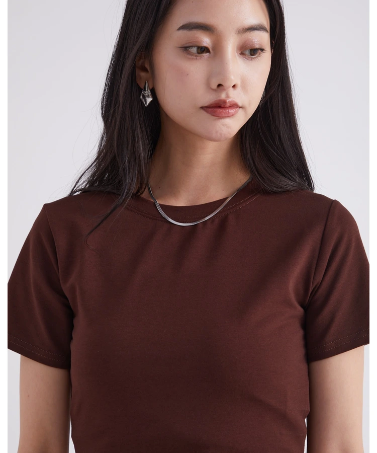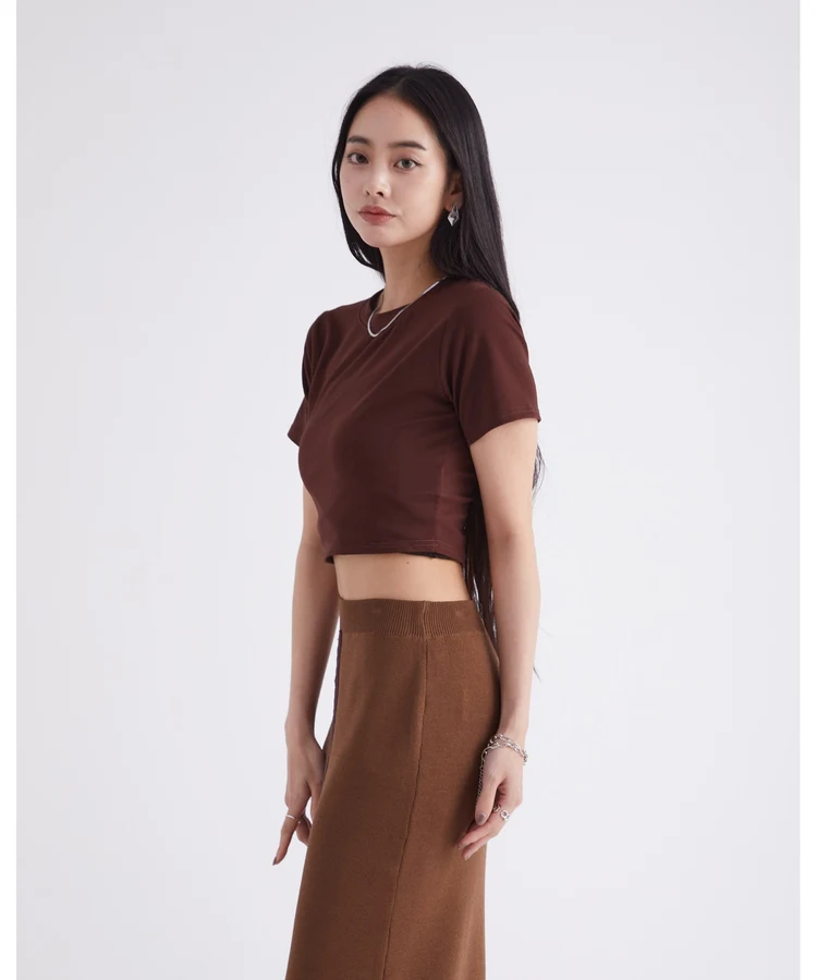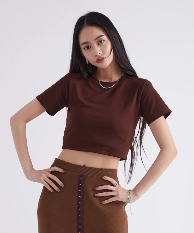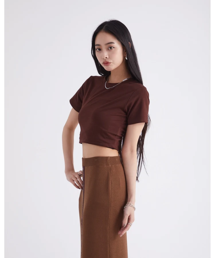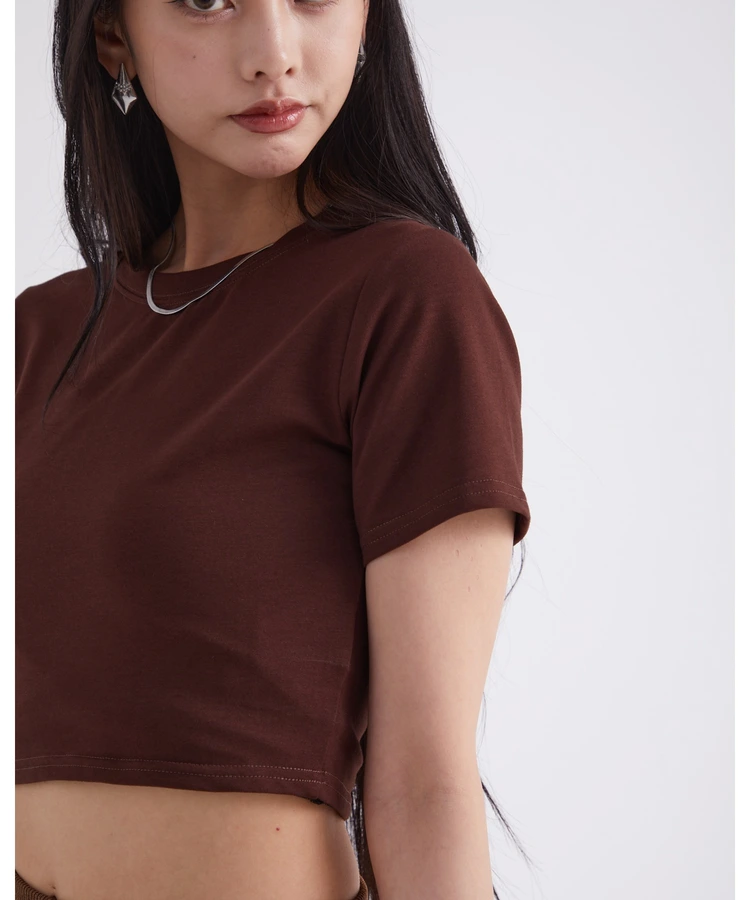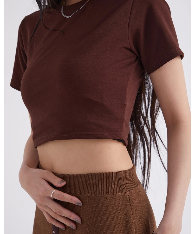 シアーシャーリングドッキングクロップドTシャツ【DIPINCHOCOLATE】