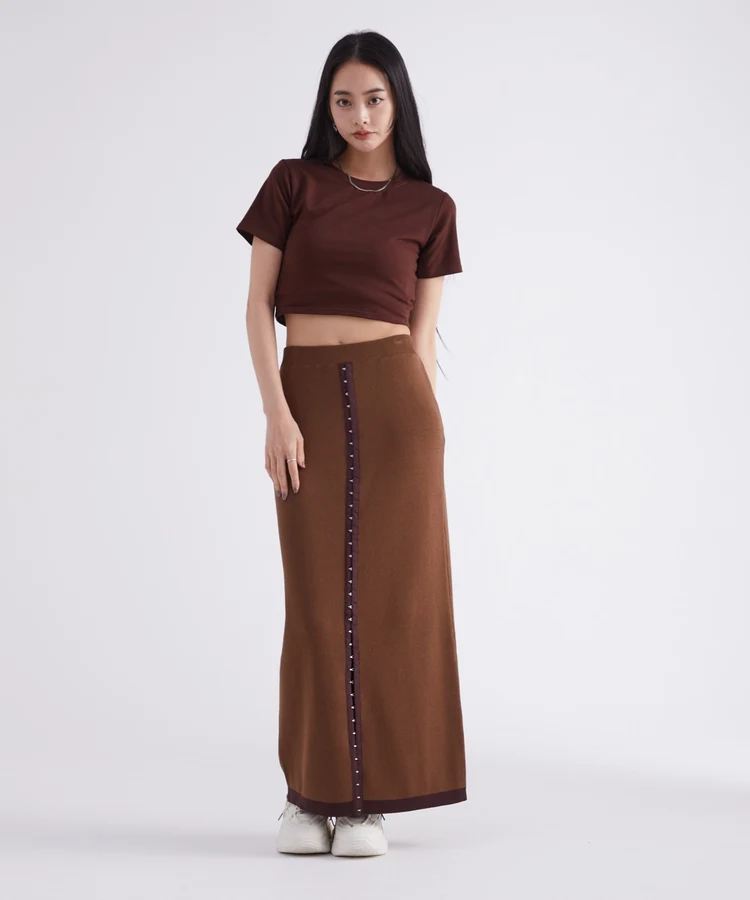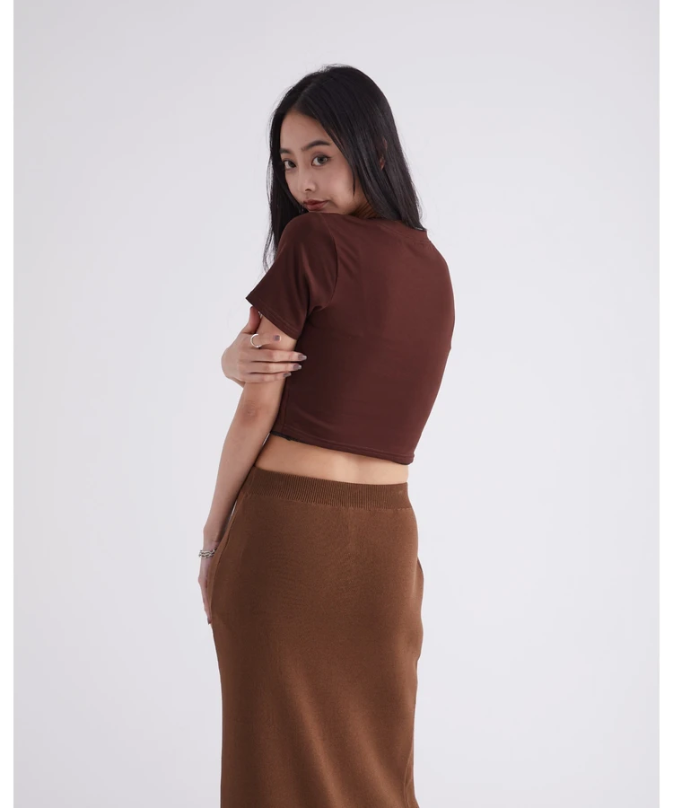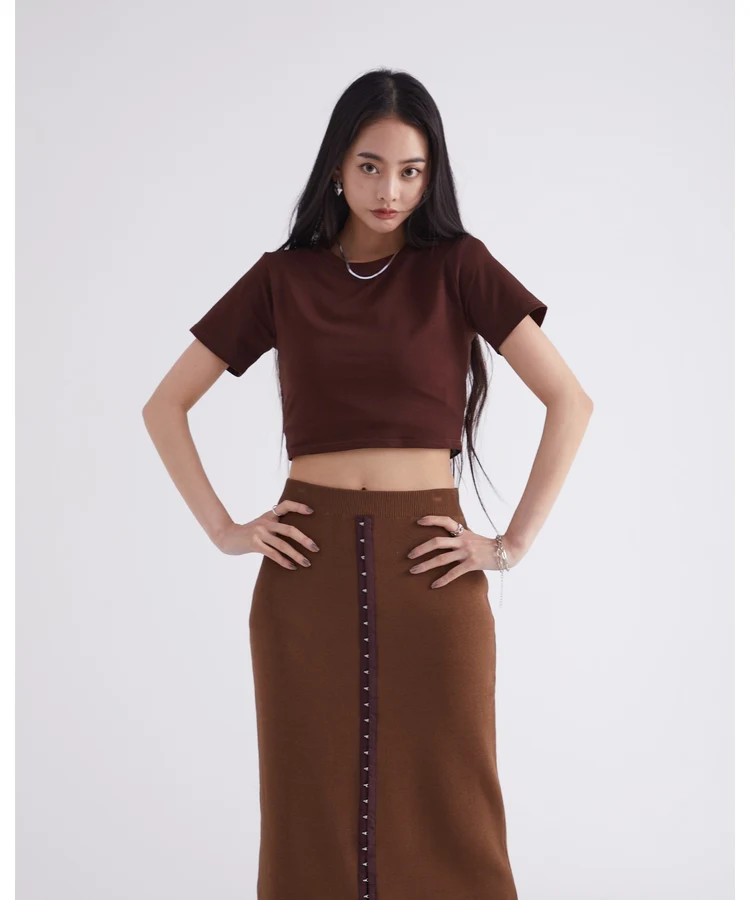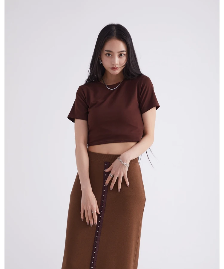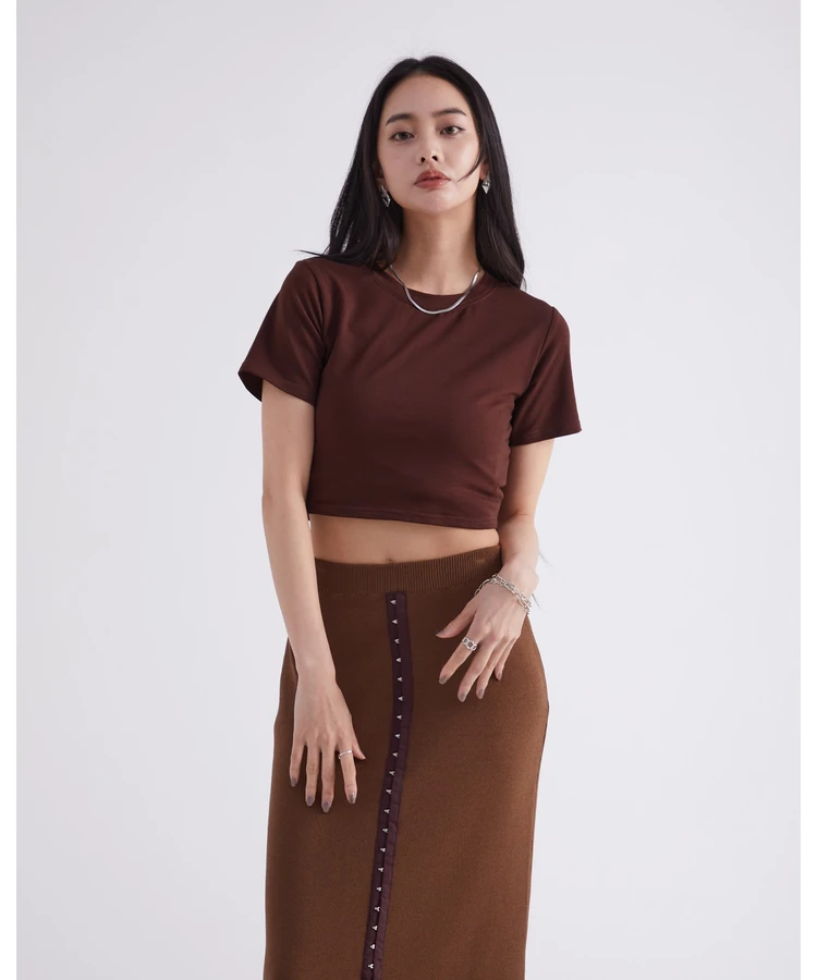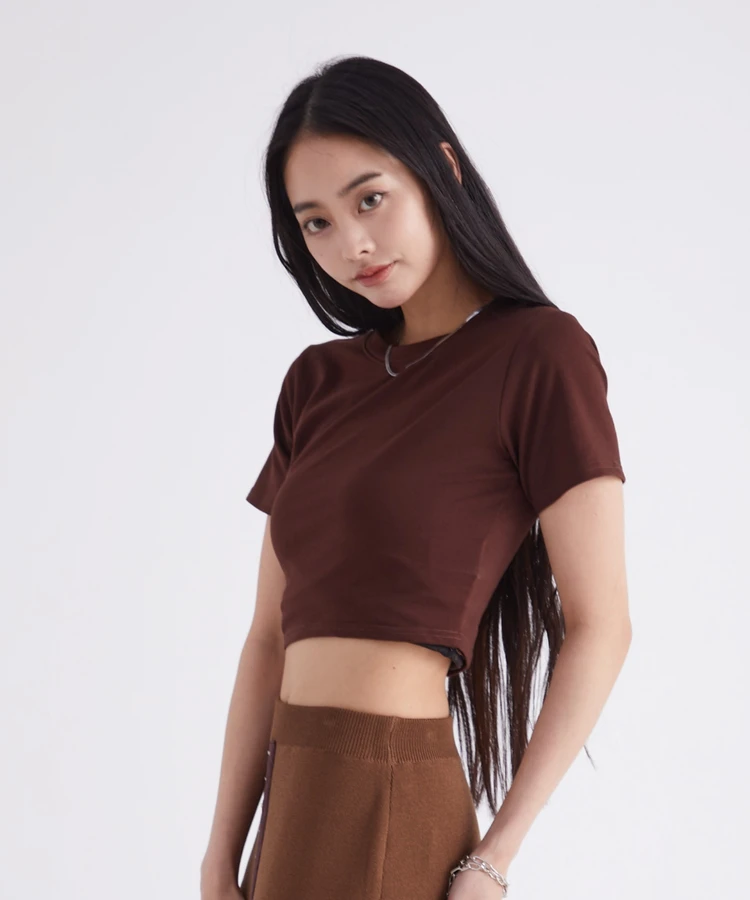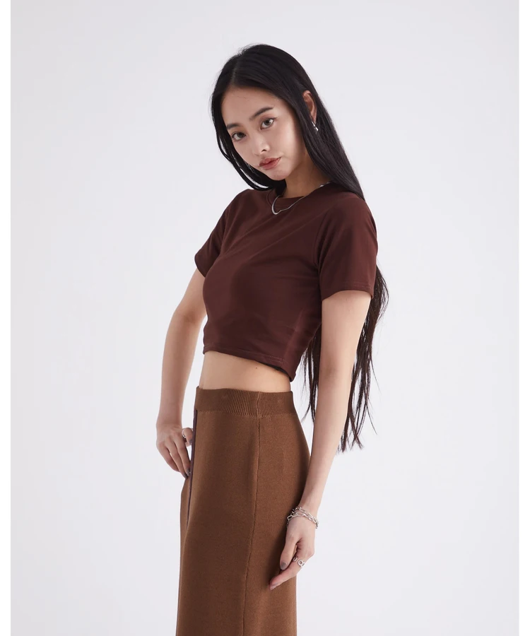 シアーシャーリングドッキングクロップドTシャツ【DIPINCHOCOLATE】