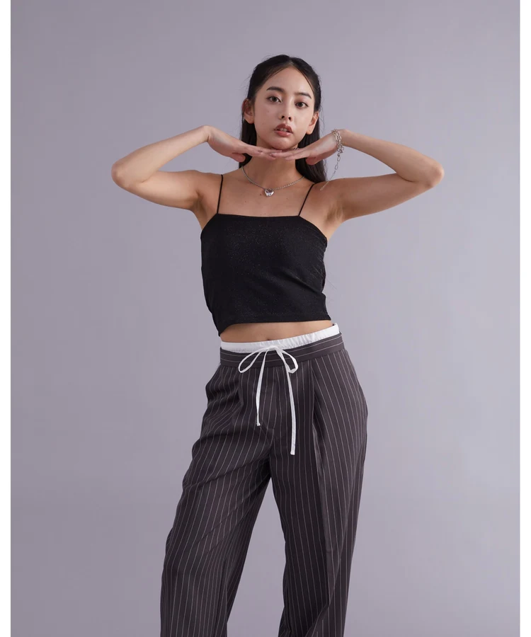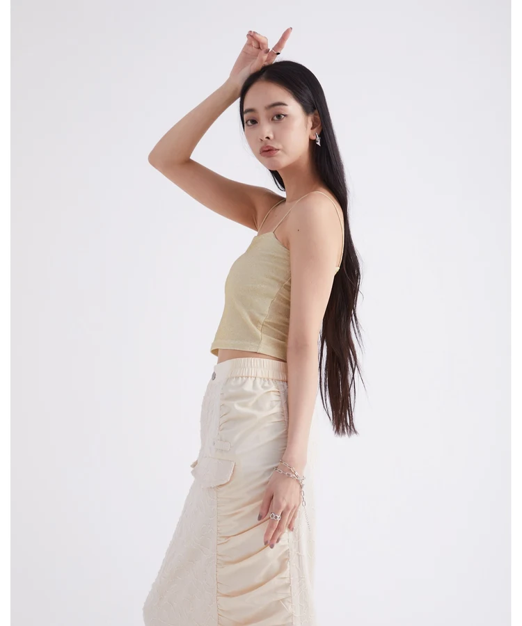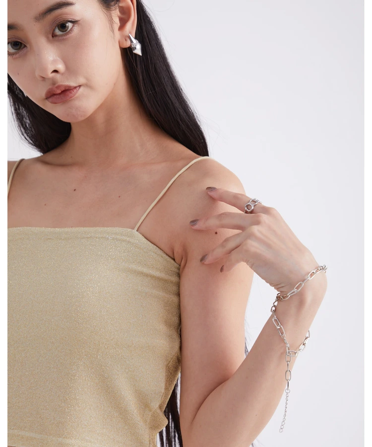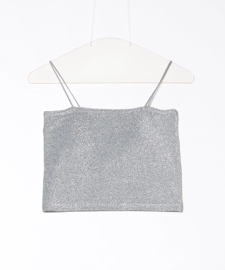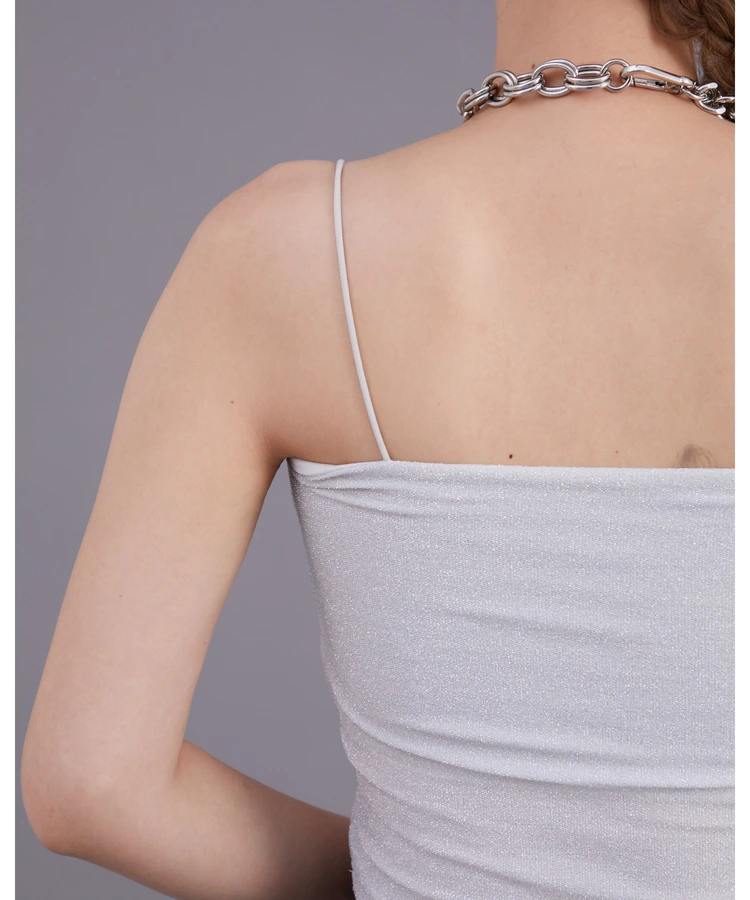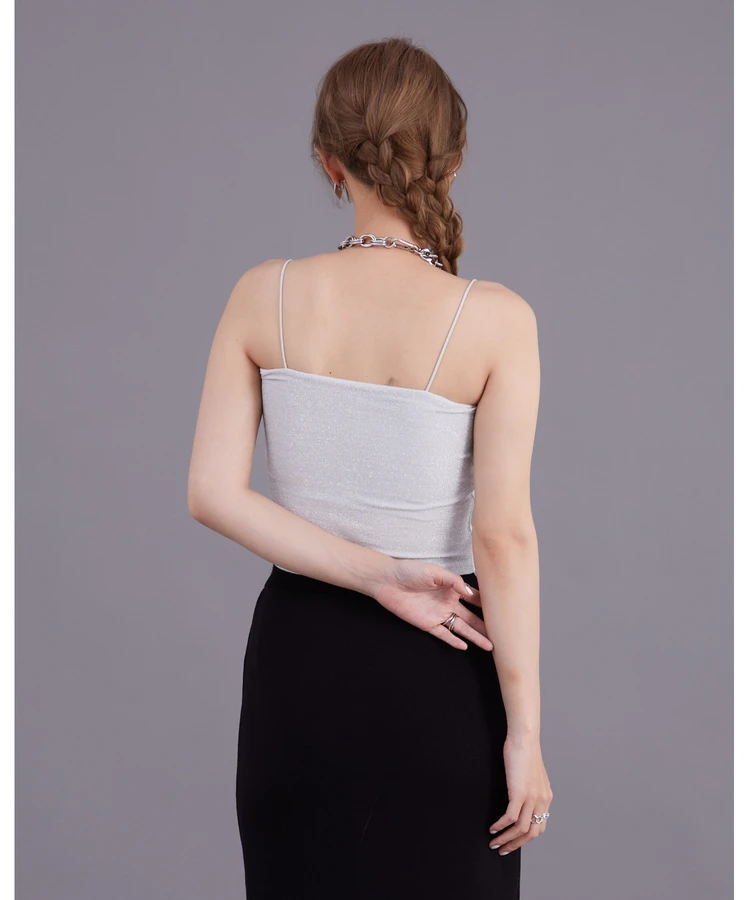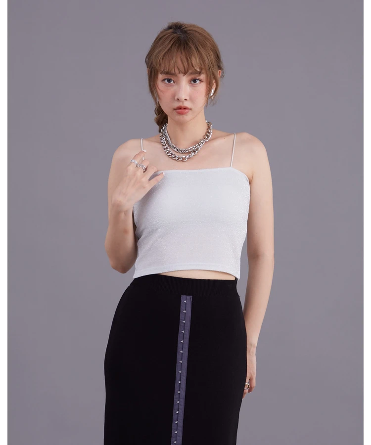 「ラメベアトップ」は、華やかなラメ素材が目を引くコンパクトなデザインのキャミソールです。上品な光沢感を備えたラメ仕上げが特徴で、シンプルながら存在感のあるアイテム。大胆なベアトップデザインがデコルテラインを美しく引き立て、女性らしい魅力を最大限に引き出してくれる一着です。