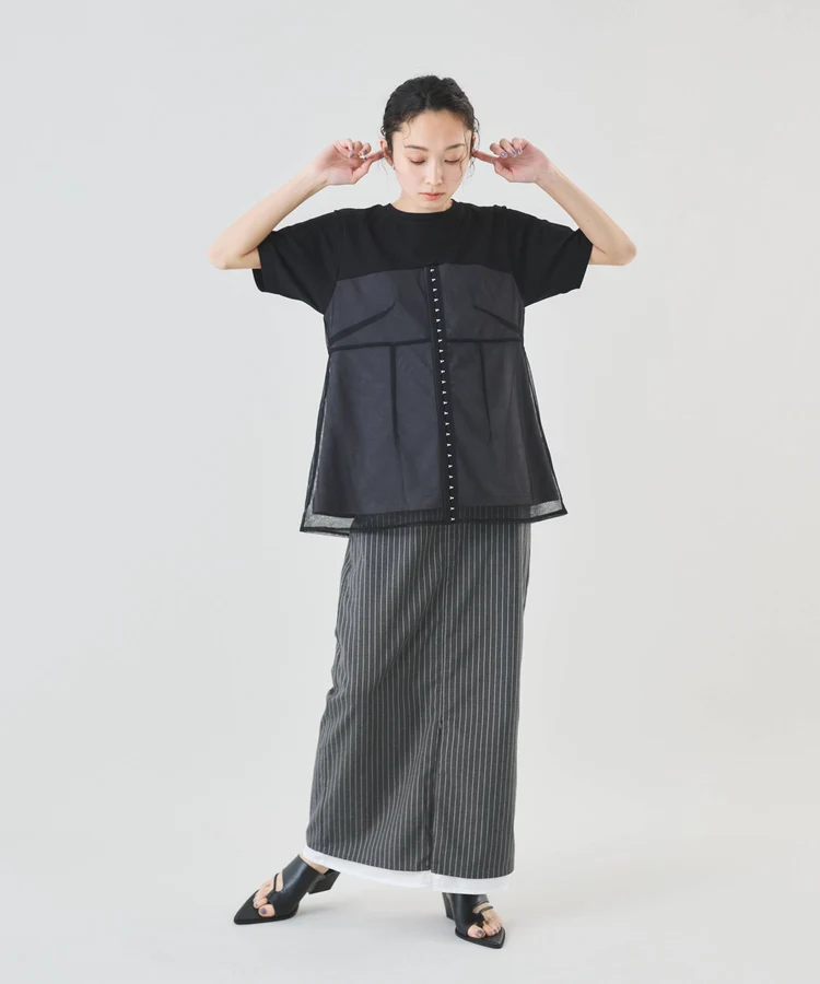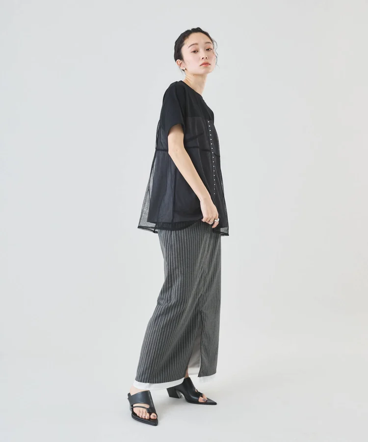 その日のコーデに合わせてスリット丈の開け具合を楽しめます。