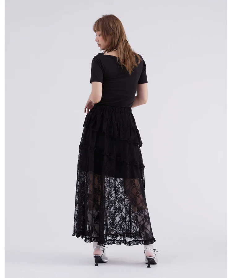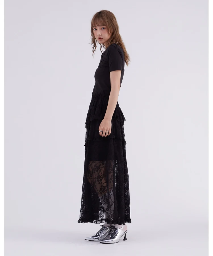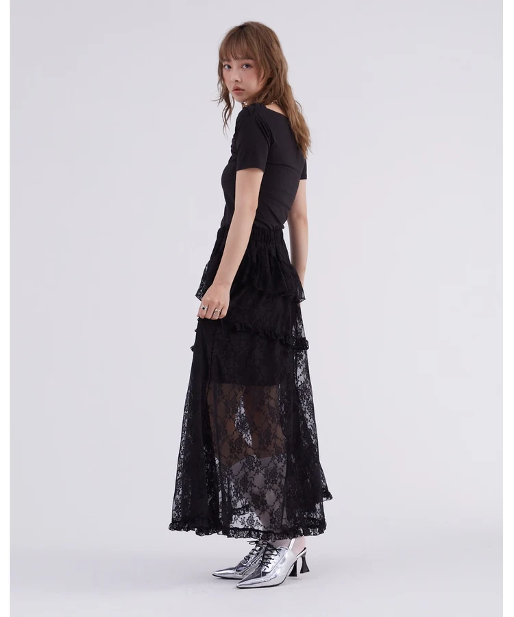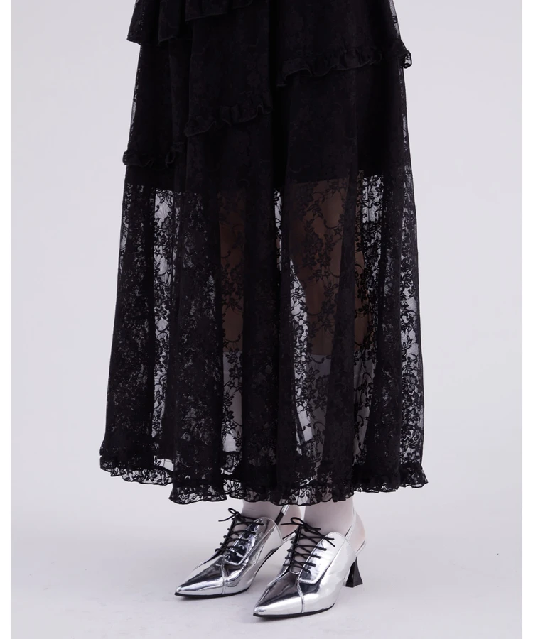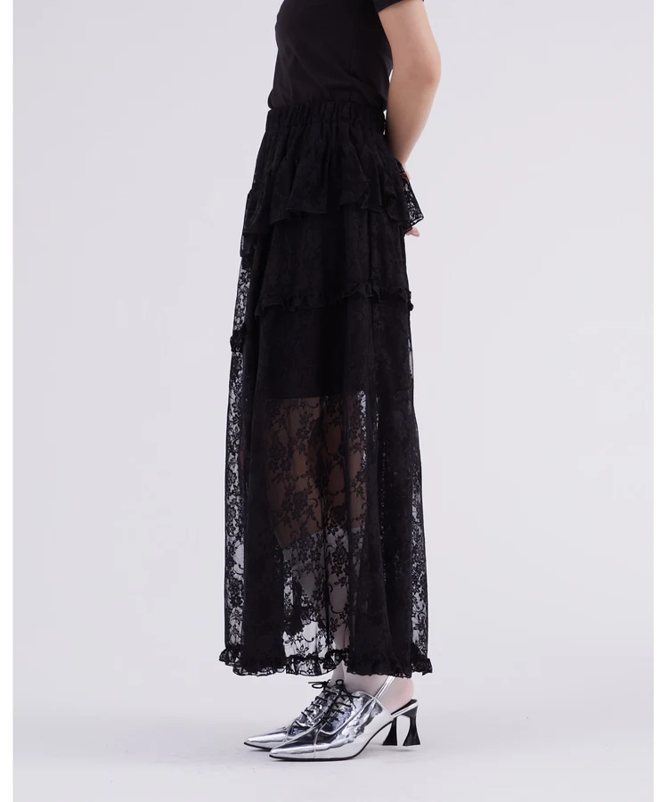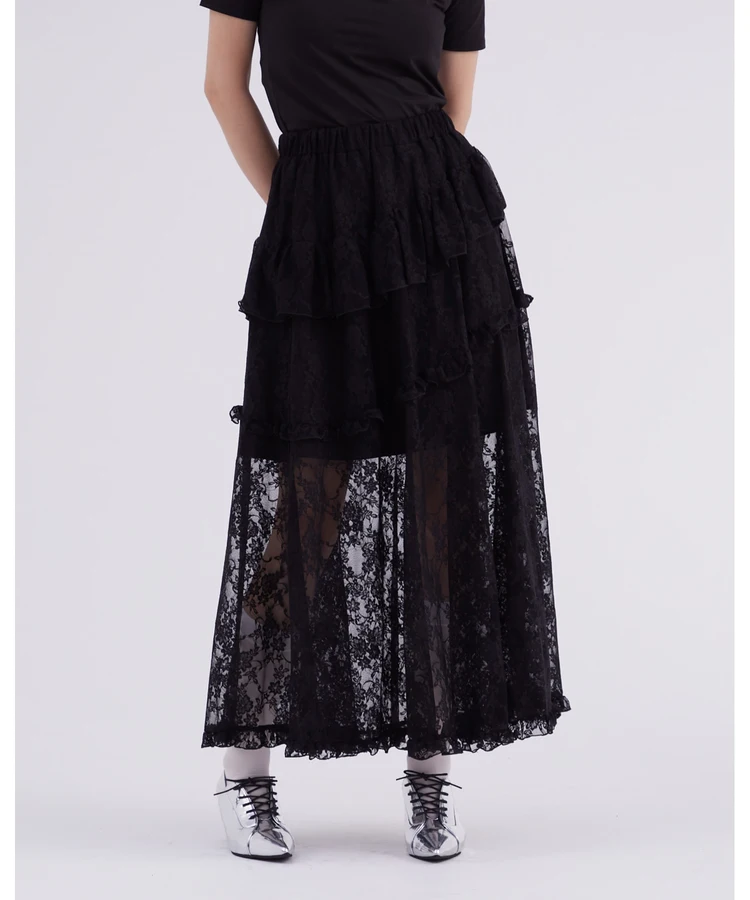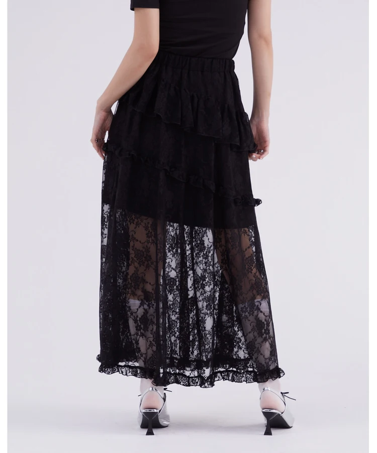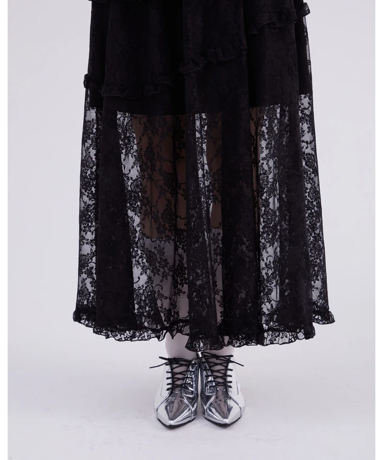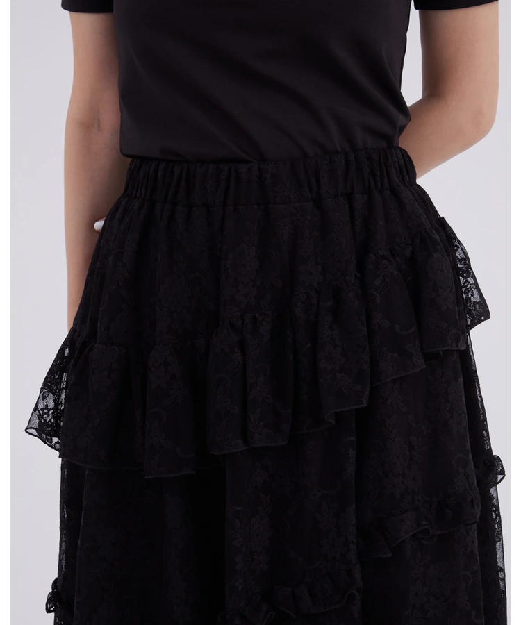 レースフリルティアードスカート【DIP IN CHOCOLATE】(ブラック)