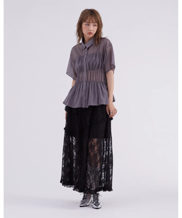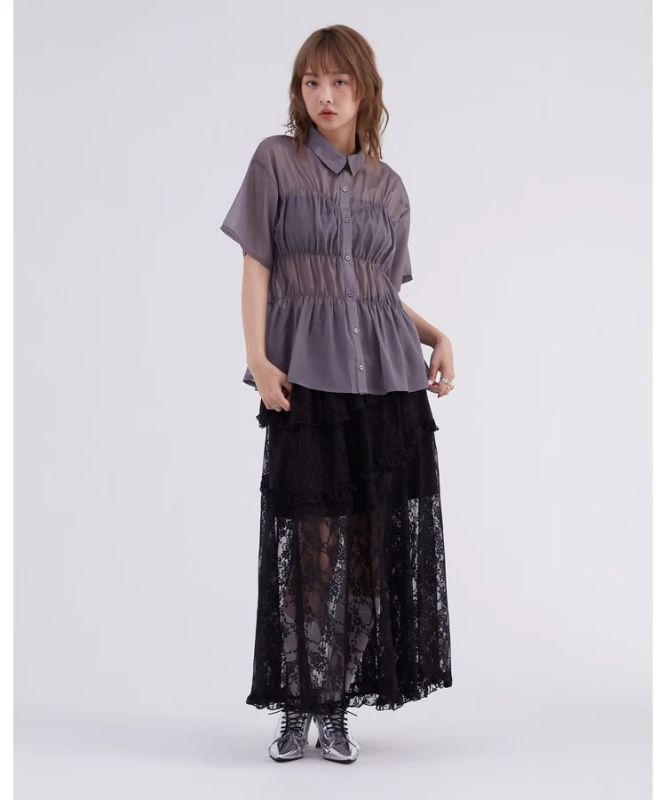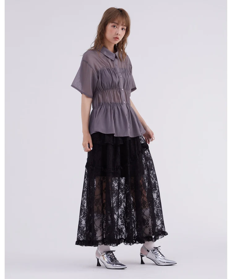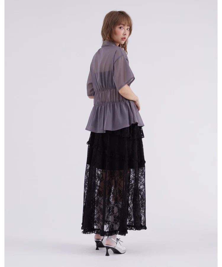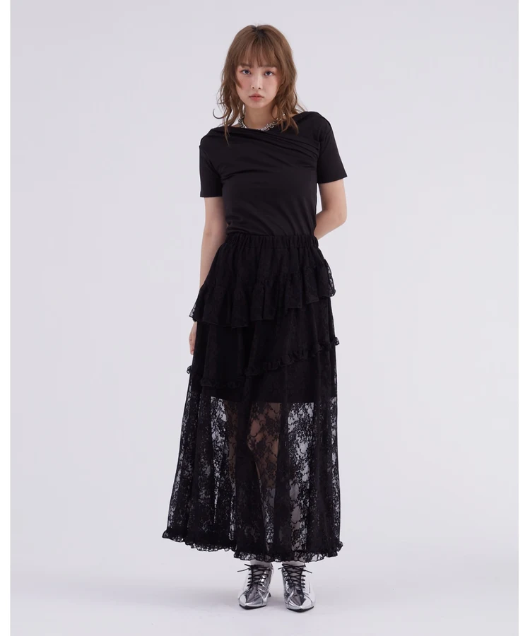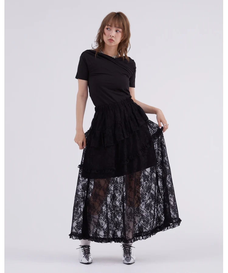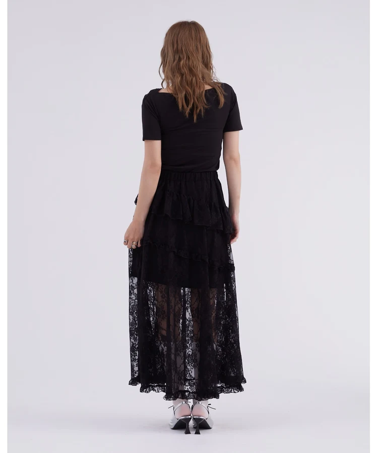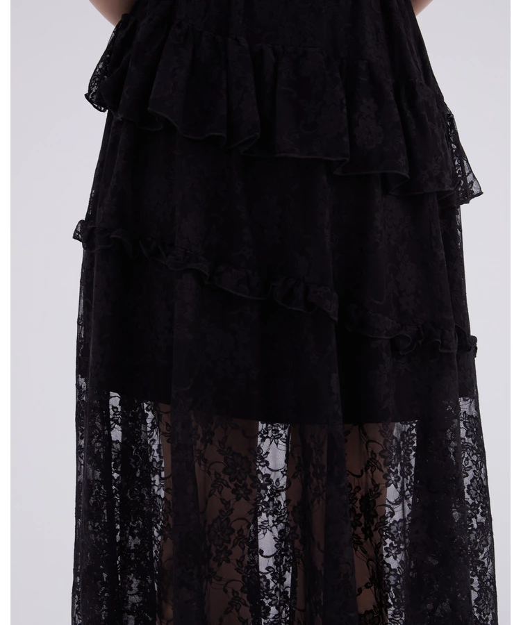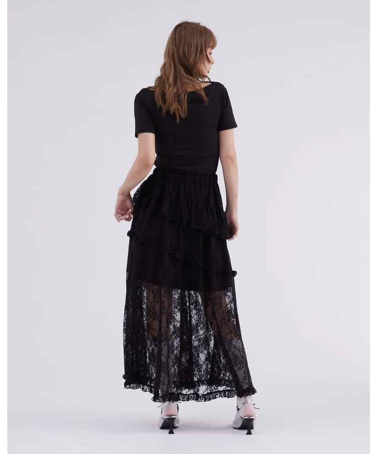 レースフリルティアードスカート【DIP IN CHOCOLATE】(ブラック)